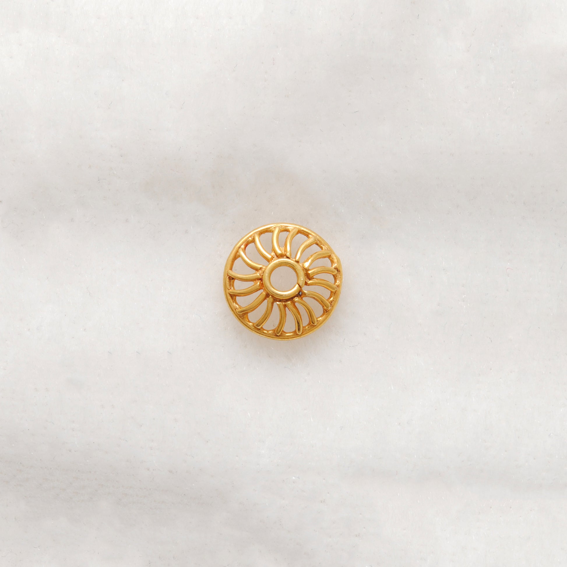 8mm 18K Gold Wheel Bead Cap Finding Jewelry Components with Unique Wheel Motif
