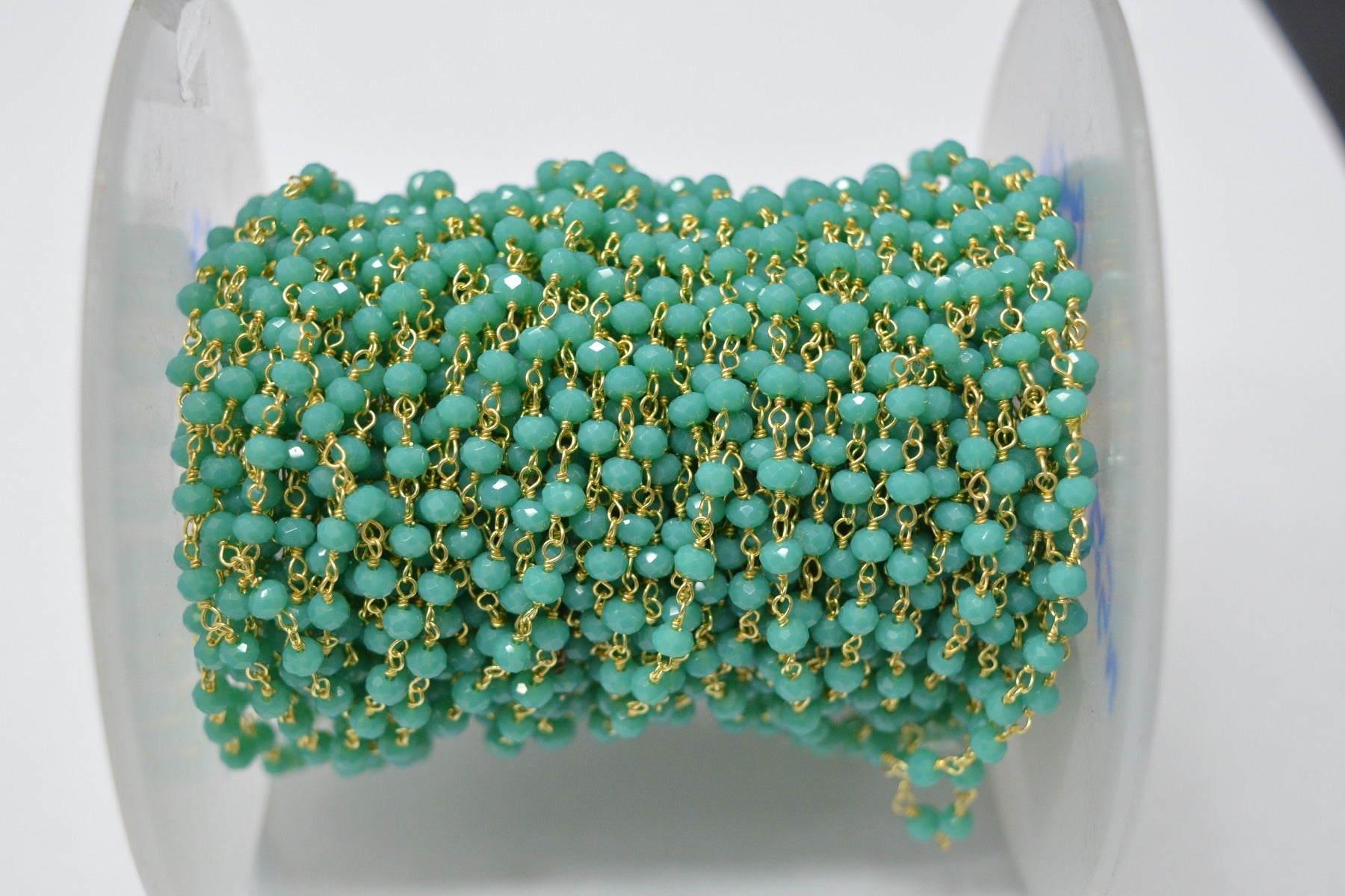 925 Sterling Silver Gold Plated Amazing Wire Wrapped Rosary Chain With Roundel Shape 3.00mm Dark Green Agate Stone. Sold By foot, ROS2-5527