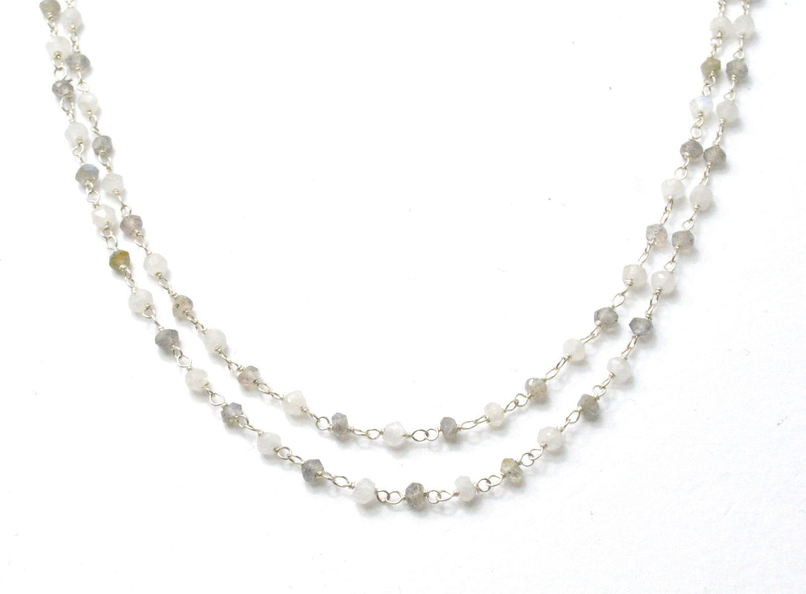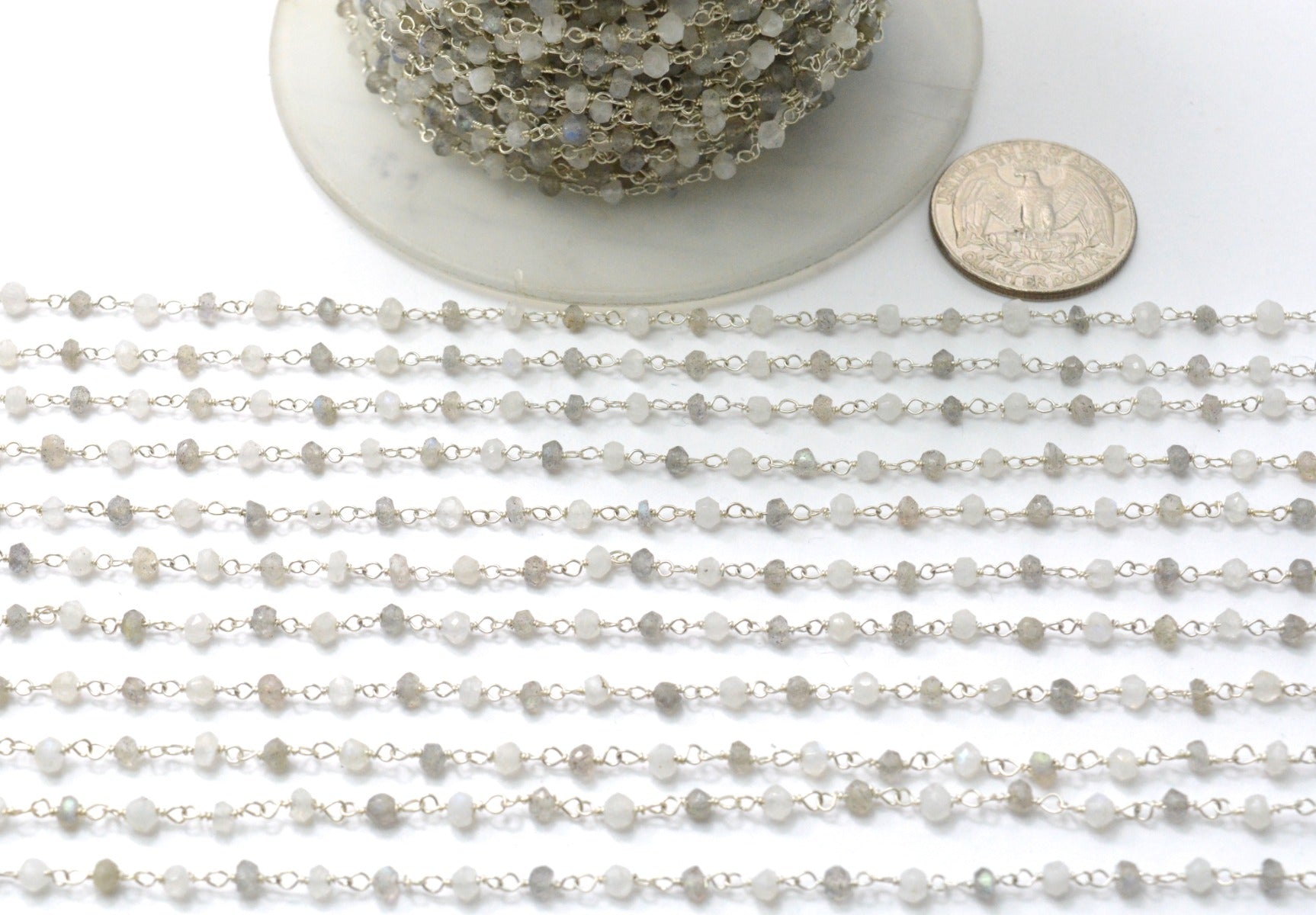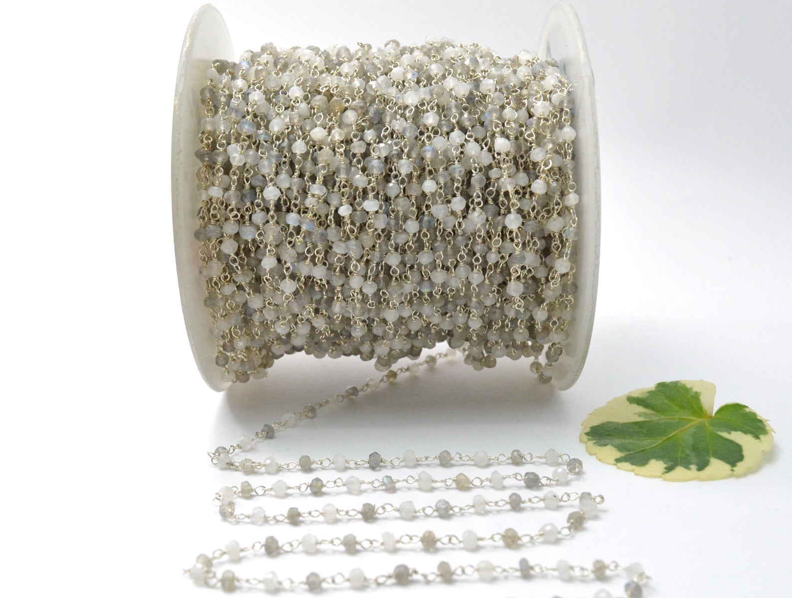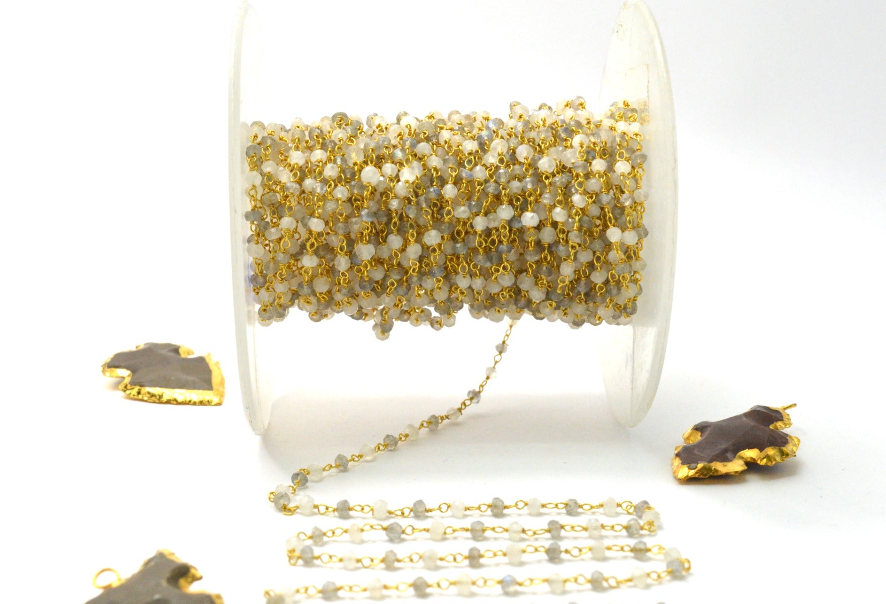925 Gold Silver Rosary Chain with Labradorite - 3mm