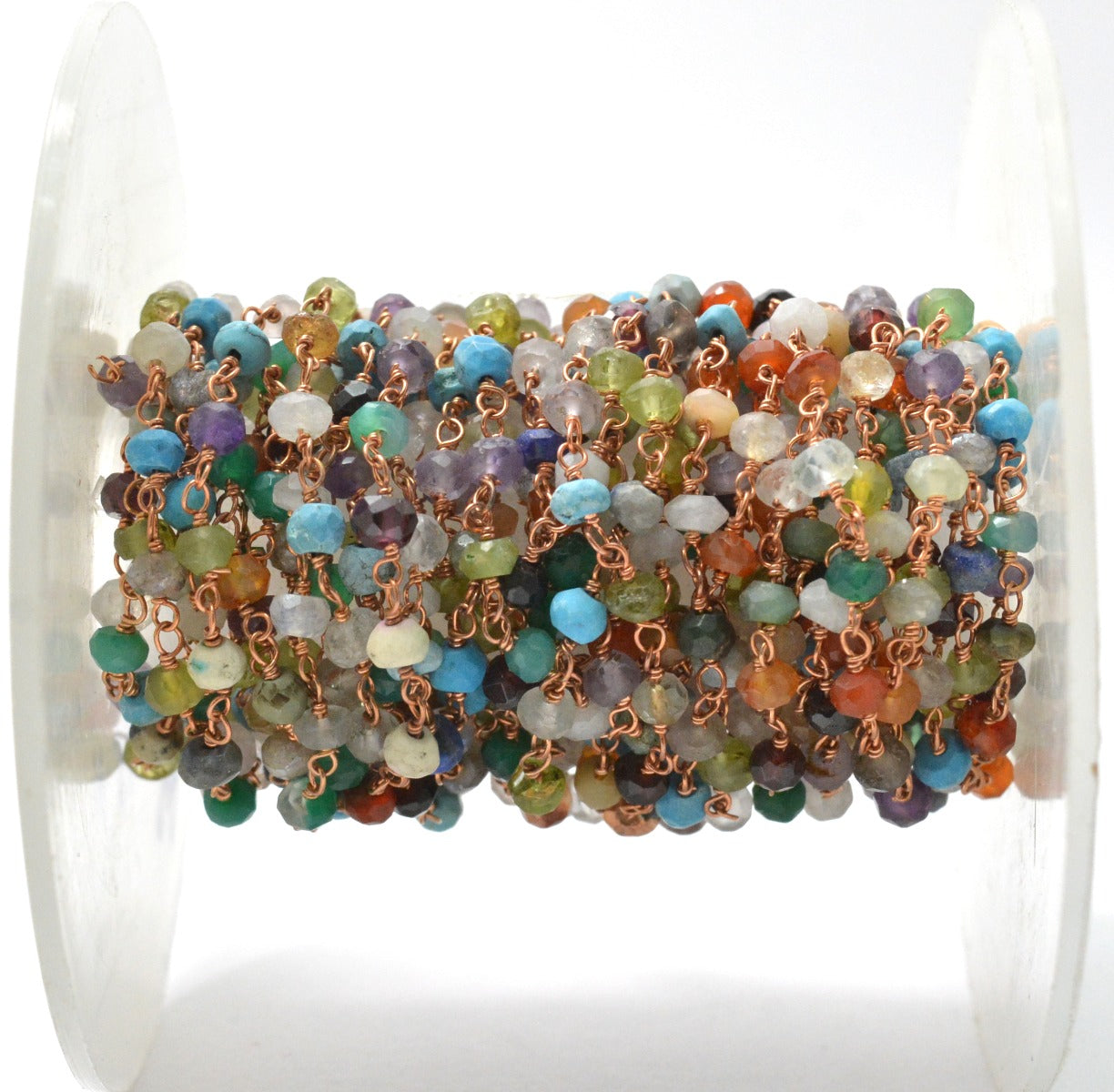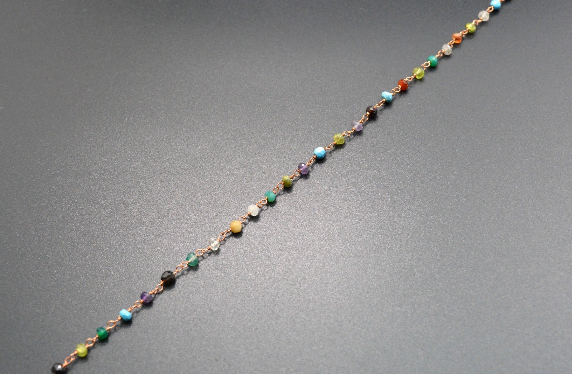 925 Gold Silver Rosary Chain with Multi Stone - 3mm