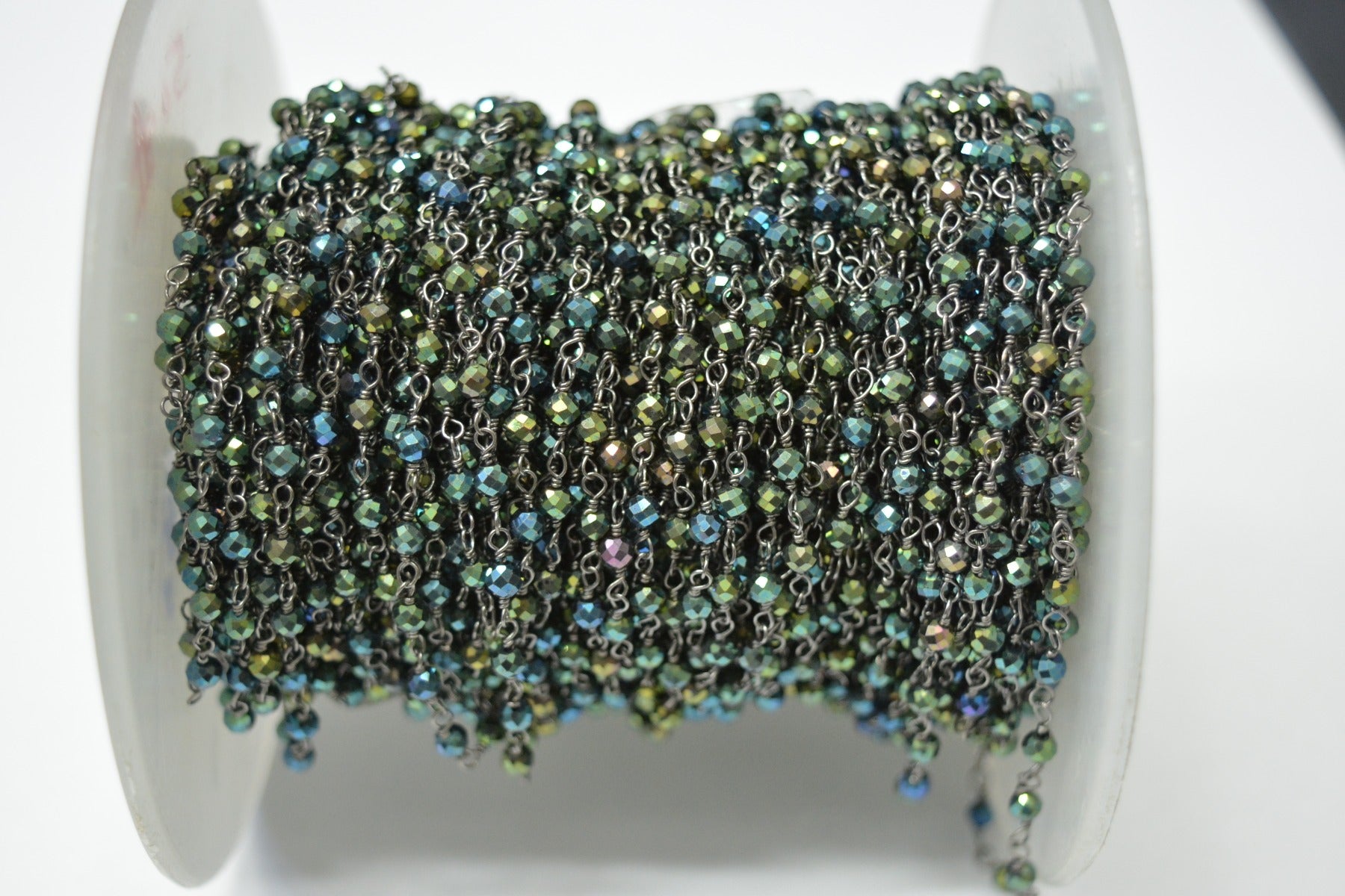 925 Sterling Silver Gold Plated Roundel Shape 3.00mm Mystic Green Coated Wire Wrapped Rosary Chain. Sold By foot, ROS2-5490