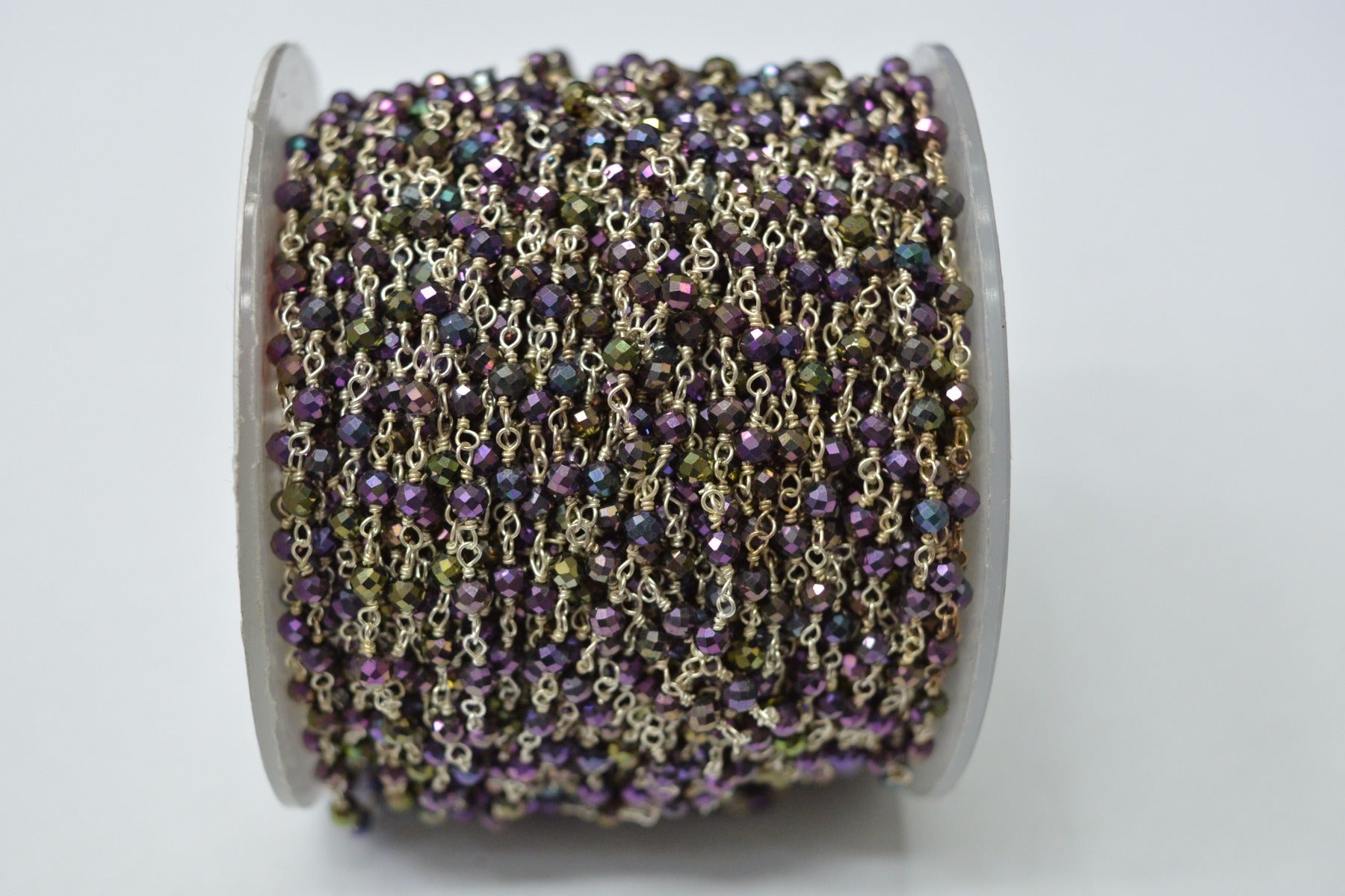 925 Sterling Silver Gold Plated Magnificent Wire Wrapped Roundel Shape 3.00mm Mystic Pink Coated Rosary Chains. Sold By Foot, ROS2-5531