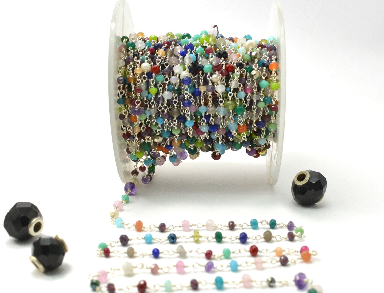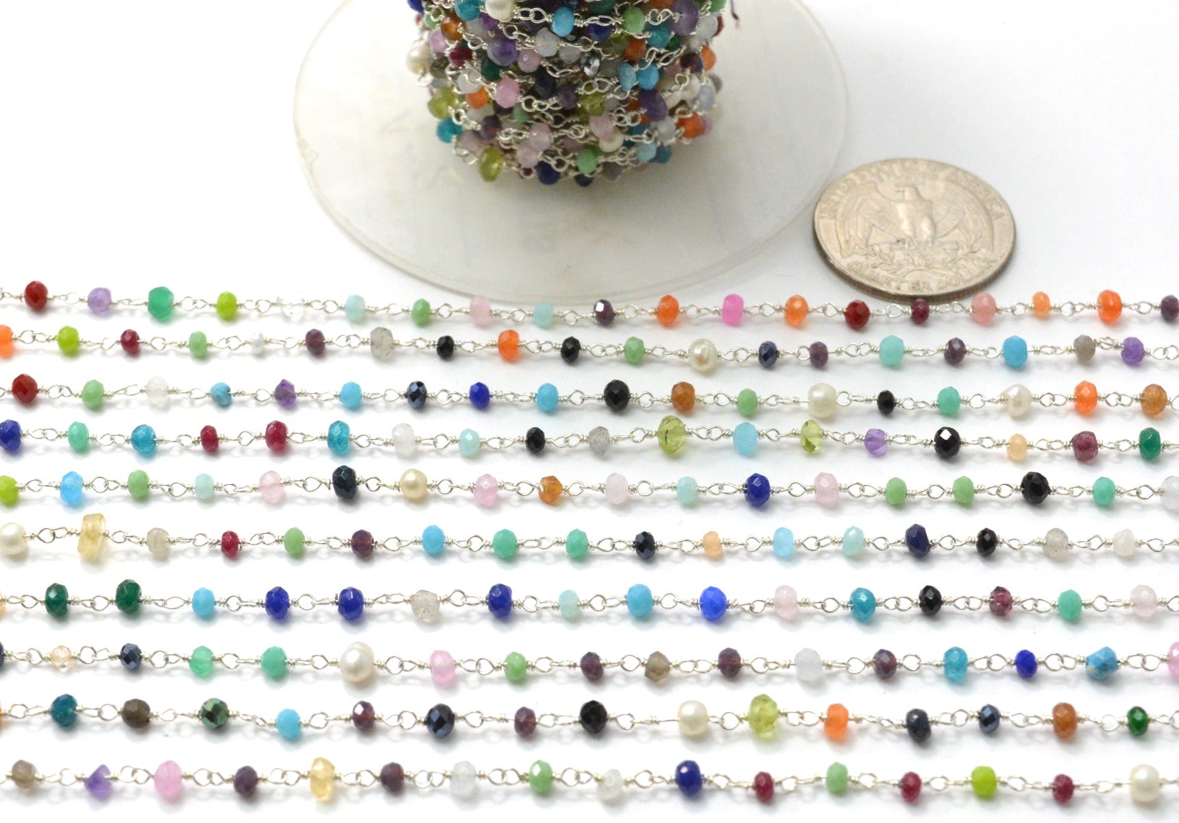925 Gold Silver Rosary Chain with Stone - 3mm #2