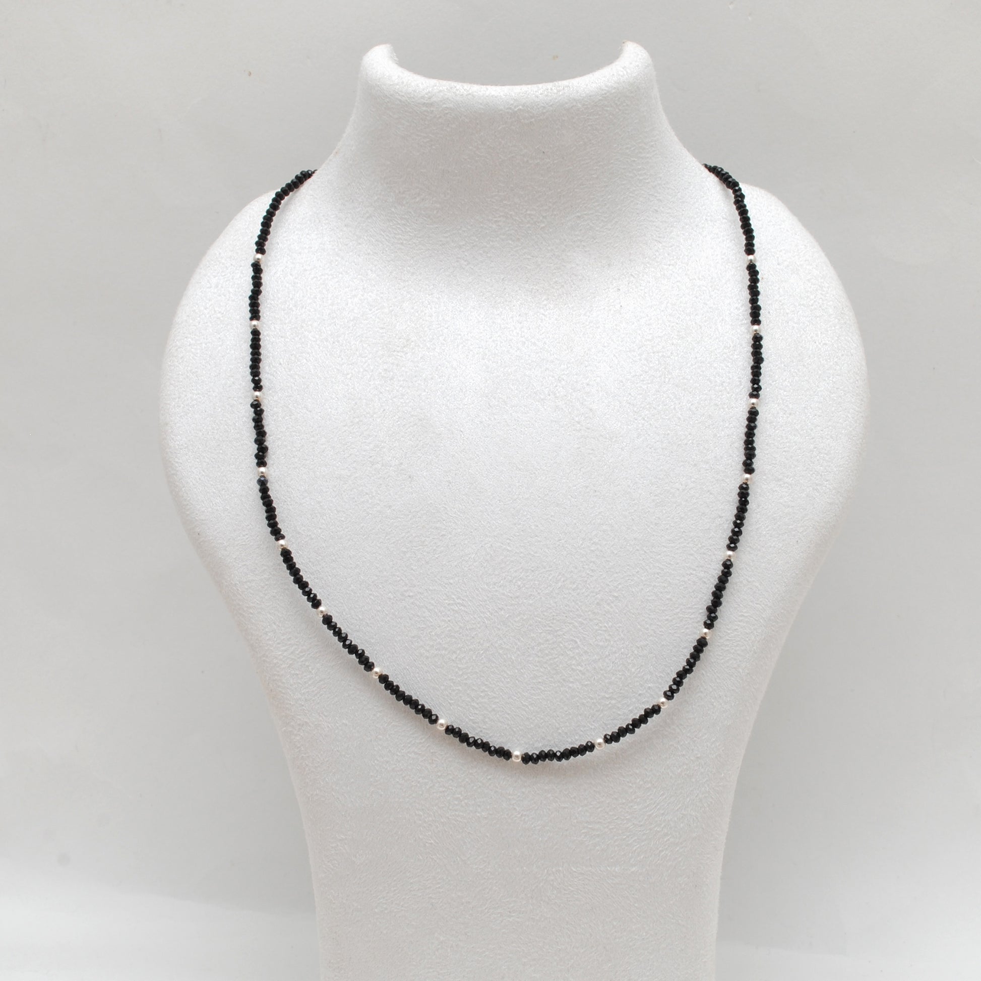 925 Silver 18-Inch Black Spinel Necklace – 2mm Faceted Beads