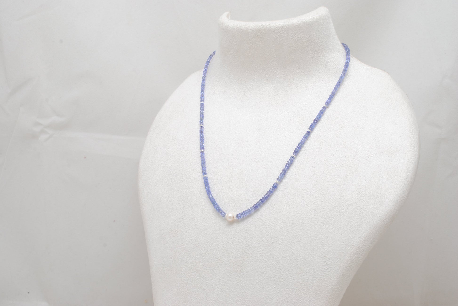 Natural Blue Tanzanite & Pearl Necklace, 925 Sterling Silver, Stylish Beaded Jewelry Gift