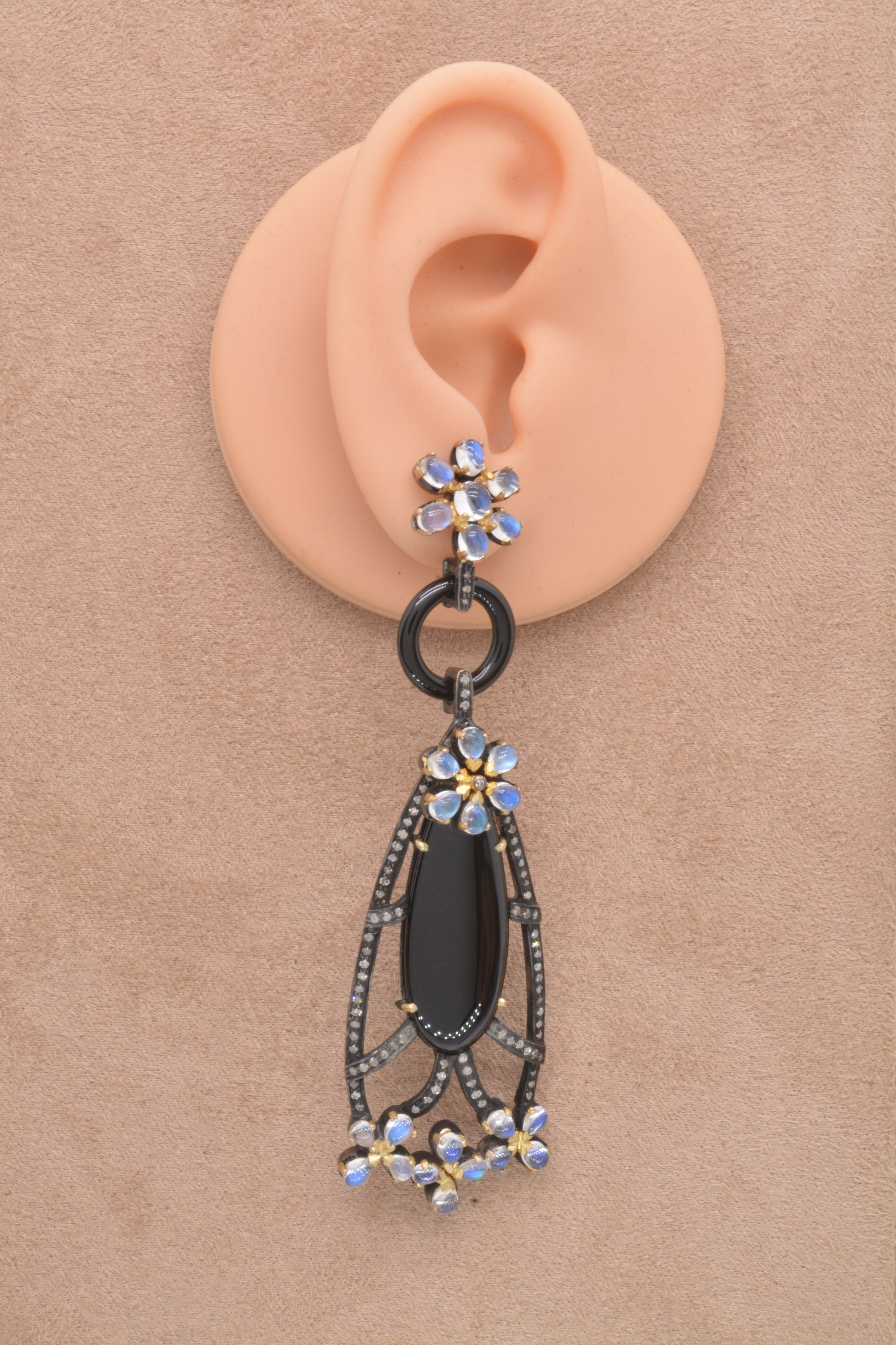 925 Silver Elegant Handcrafted Mixed Stone and CZ Teardrop Earrings