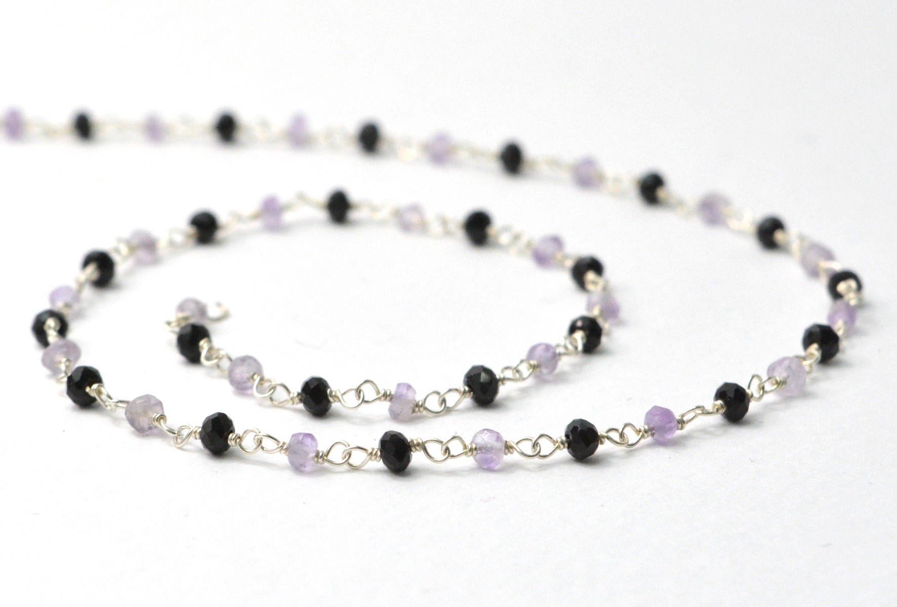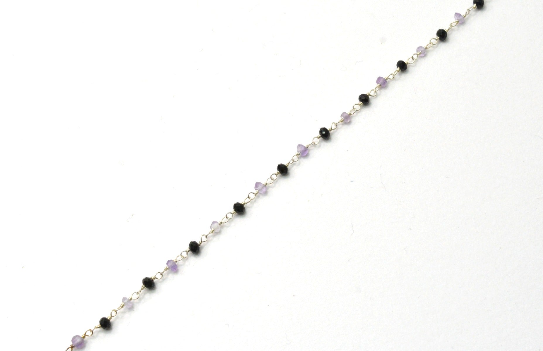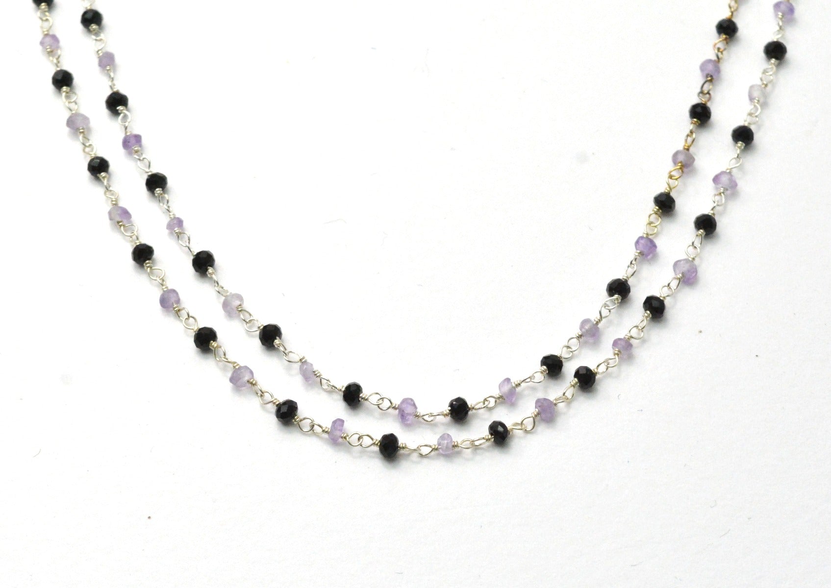 925 Silver Gold Rosary Chain with Amethyst - 3mm