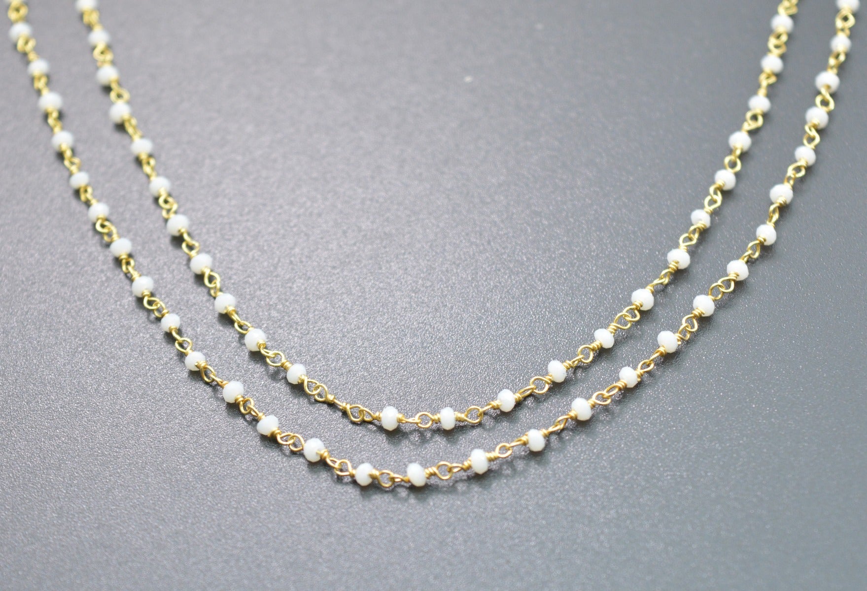 925 Silver Gold Rosary Chain with Chalcedony - 2mm #3