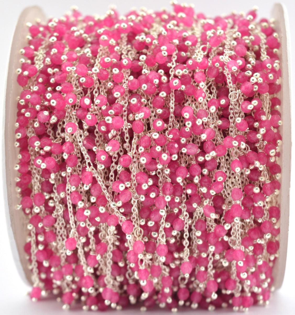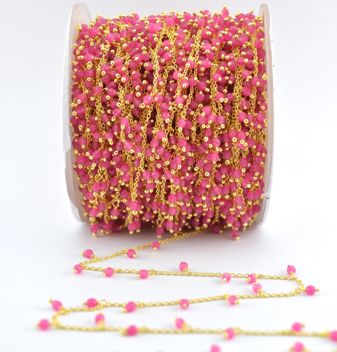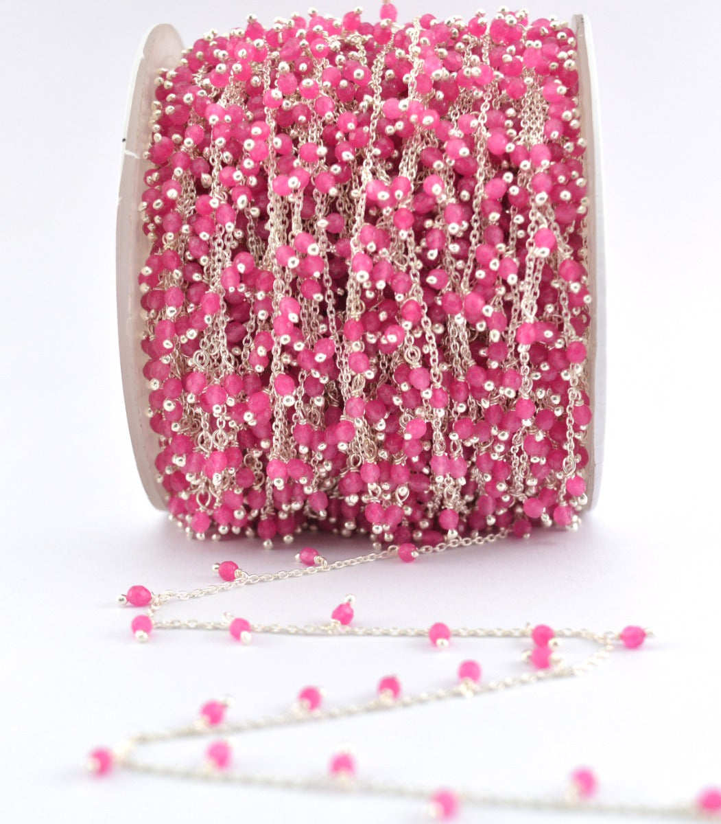 The gorgeous handmade 925 Sterling Silver Gold Hot pink chalcedony Rosary Chain is perfect finding for DIY jewelry making and can be used in multiple different ways and design.