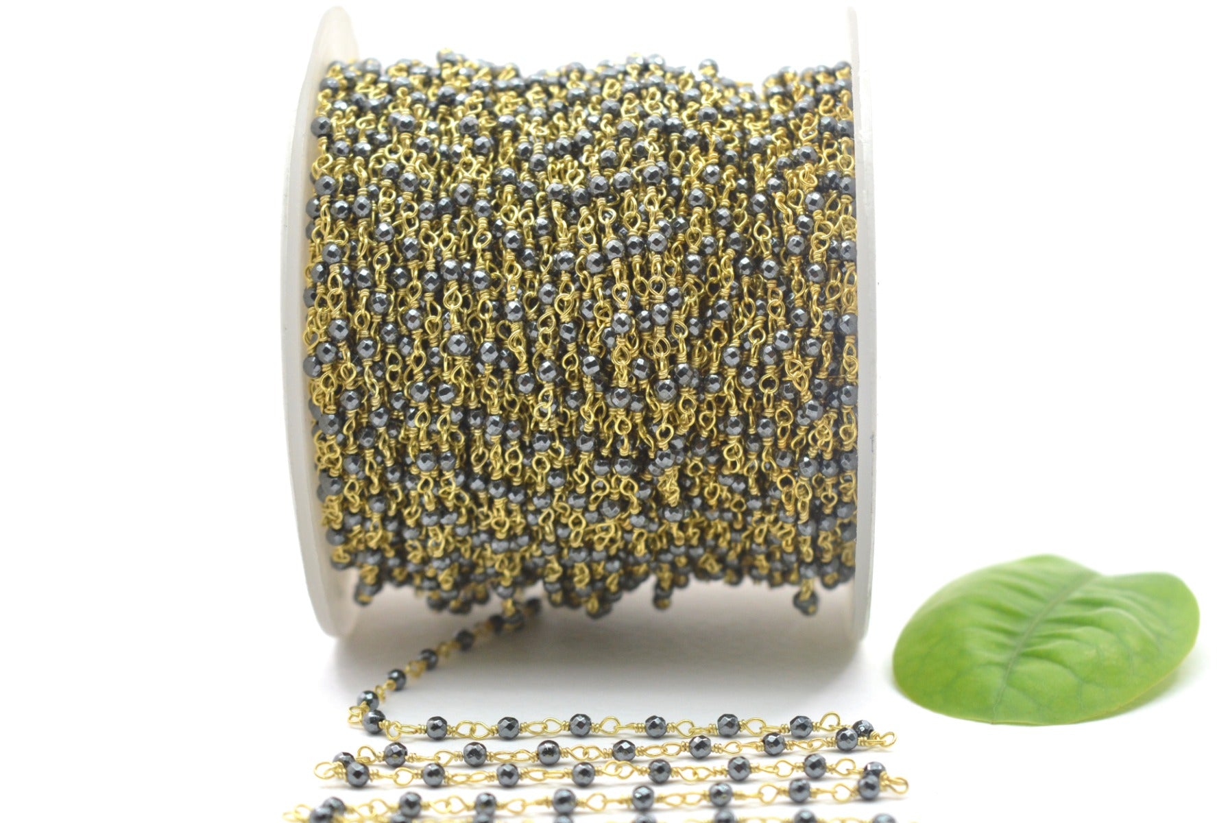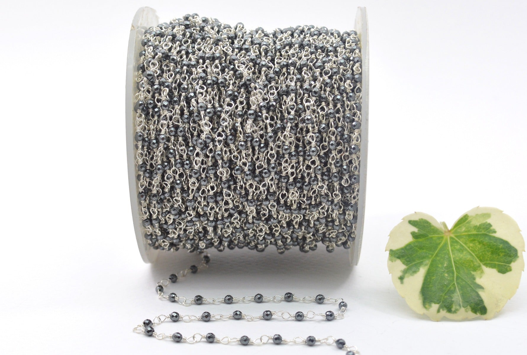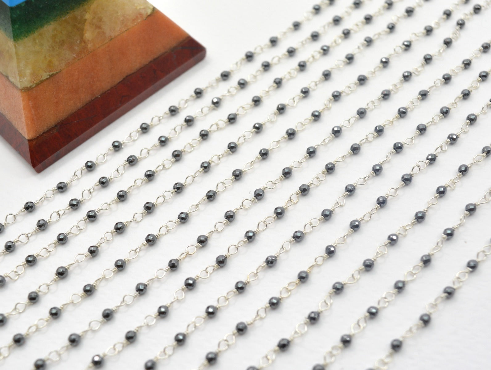 Thank you for visiting Our Site! Make your necklace or bracelet or chains design with unique beads in 925 Sterling Silver Gold Rosary Chain With Hematite Stone in Round Shape. Order Now !