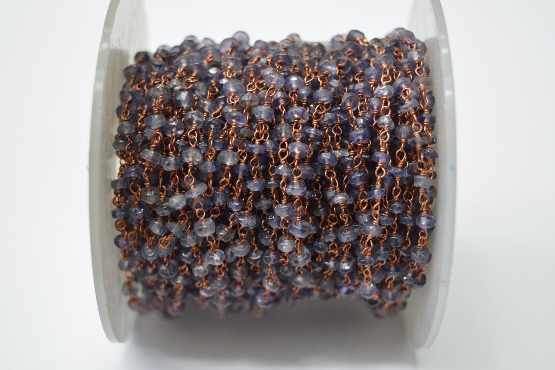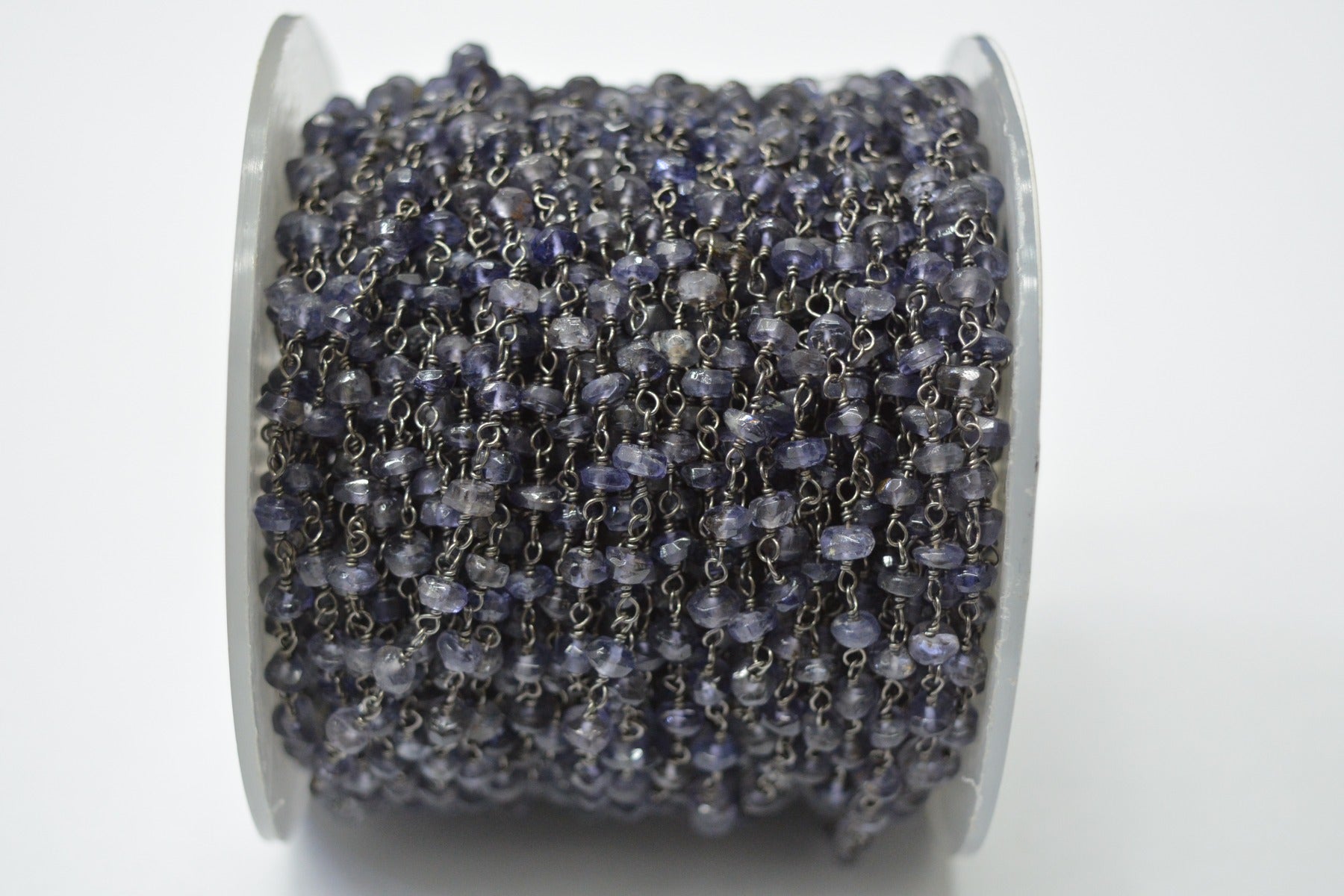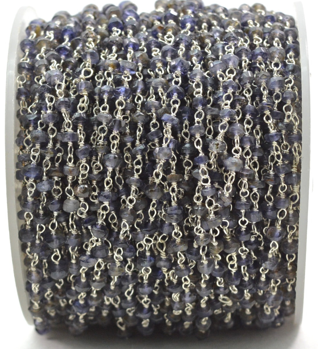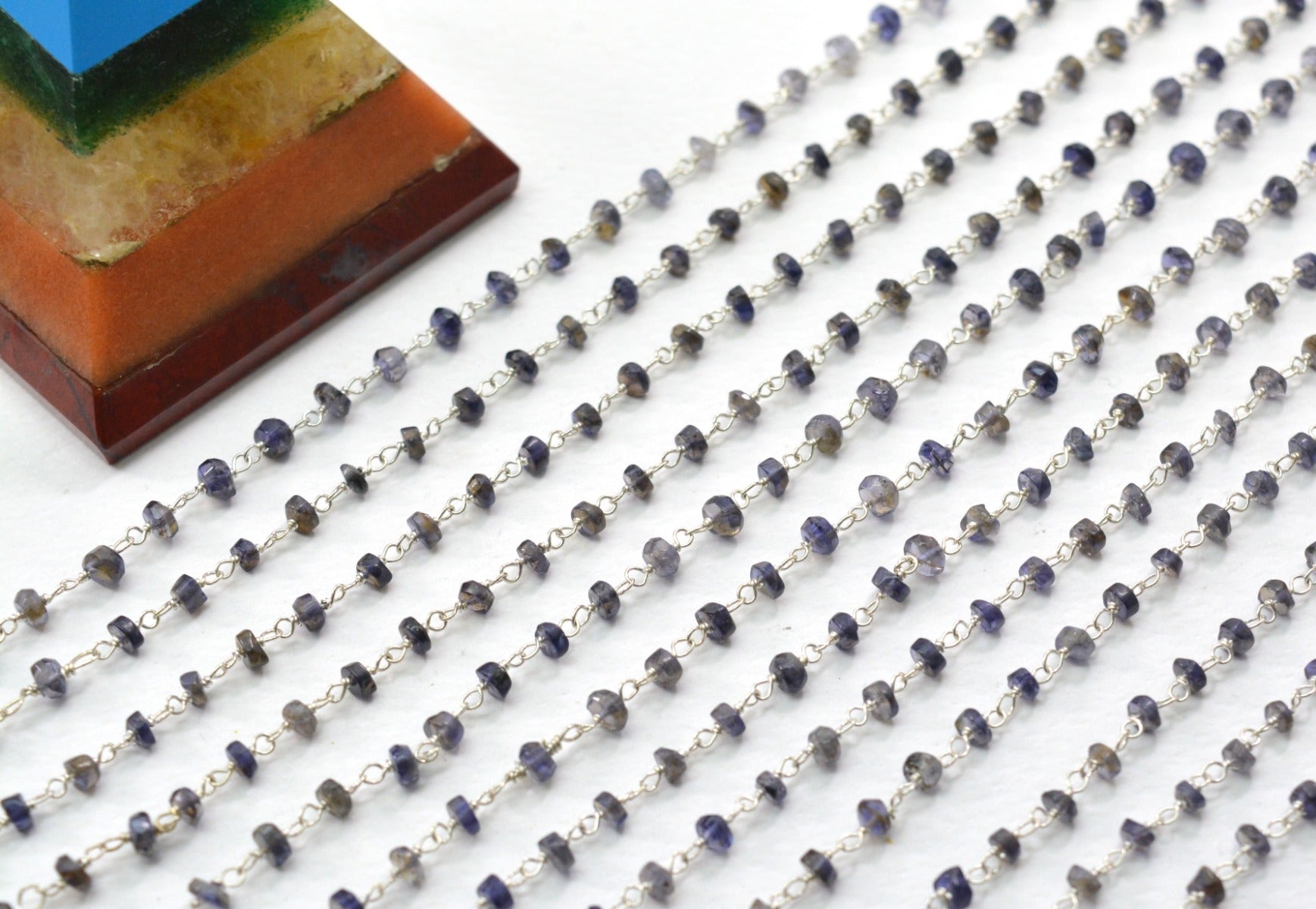 925 Silver Gold Rosary Chain with Iolite - 3mm