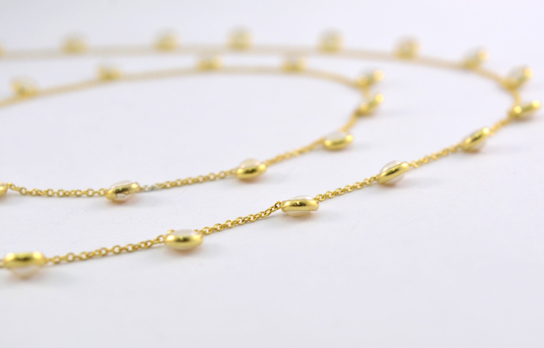 925 Silver Gold Rosary Chain with Pearl - 4mm