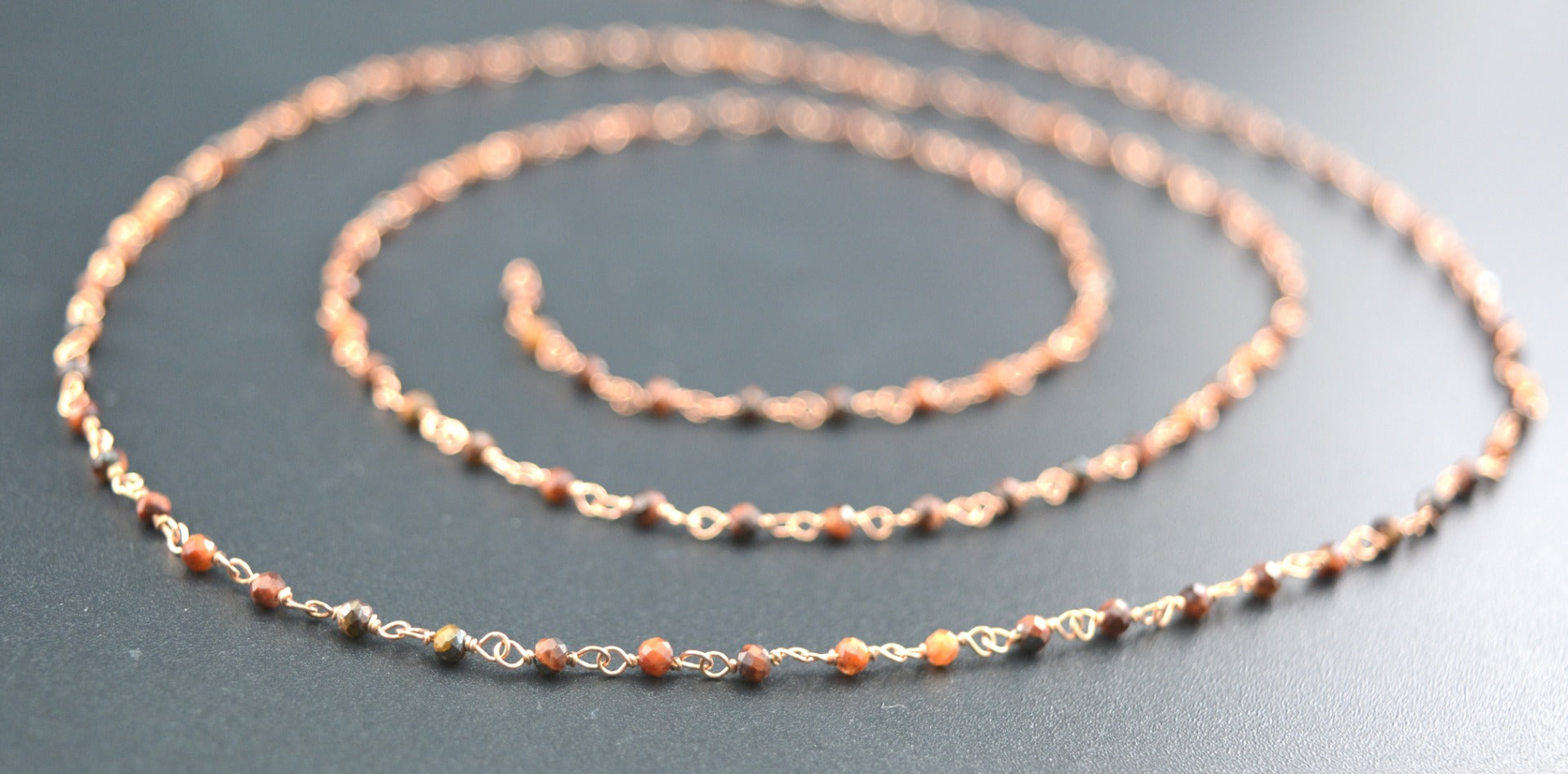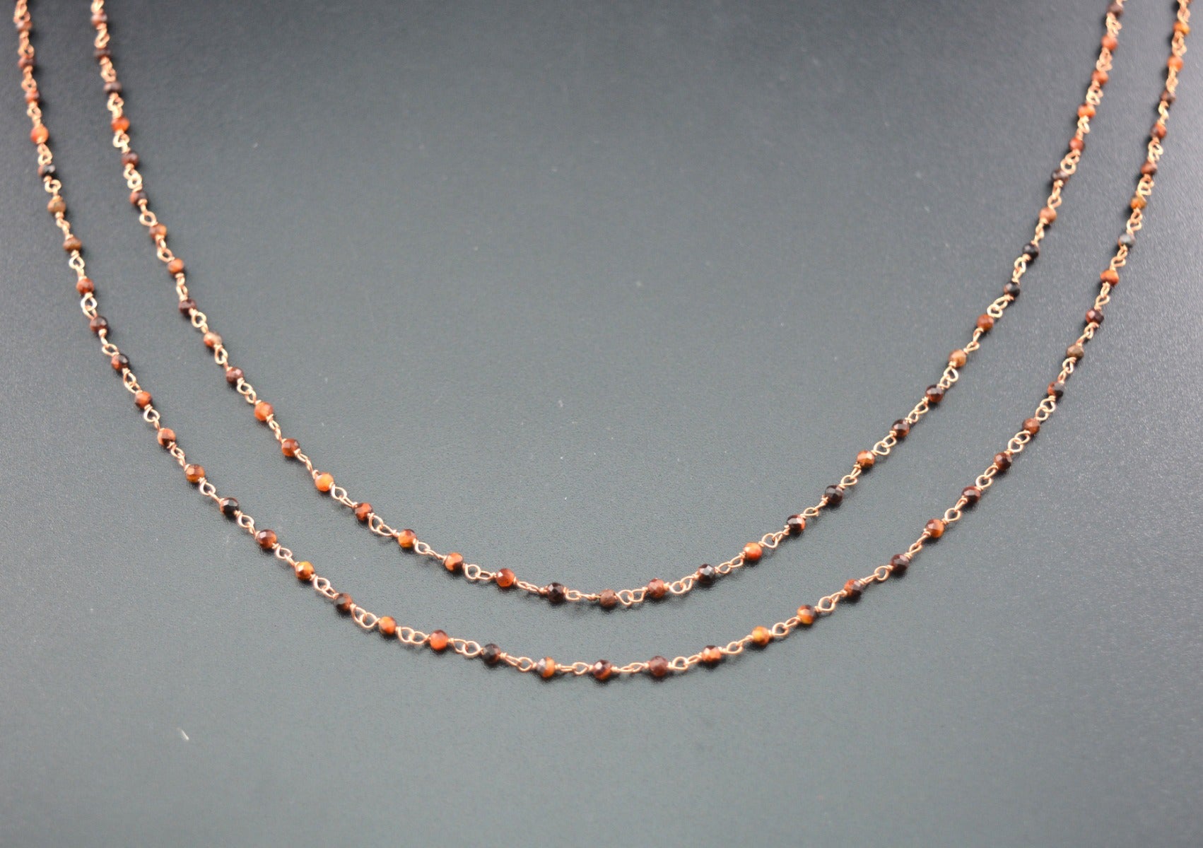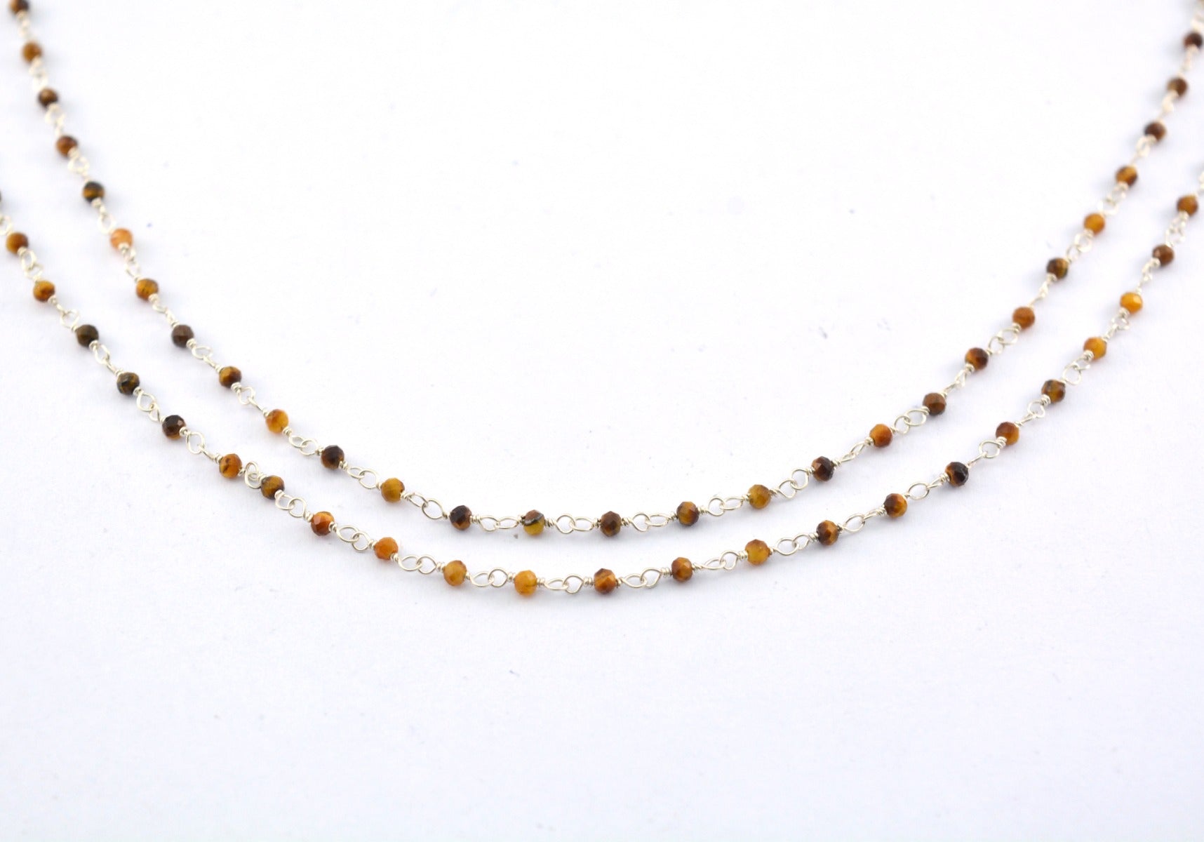 925 Silver Gold Rosary Chain with Stone - 2mm