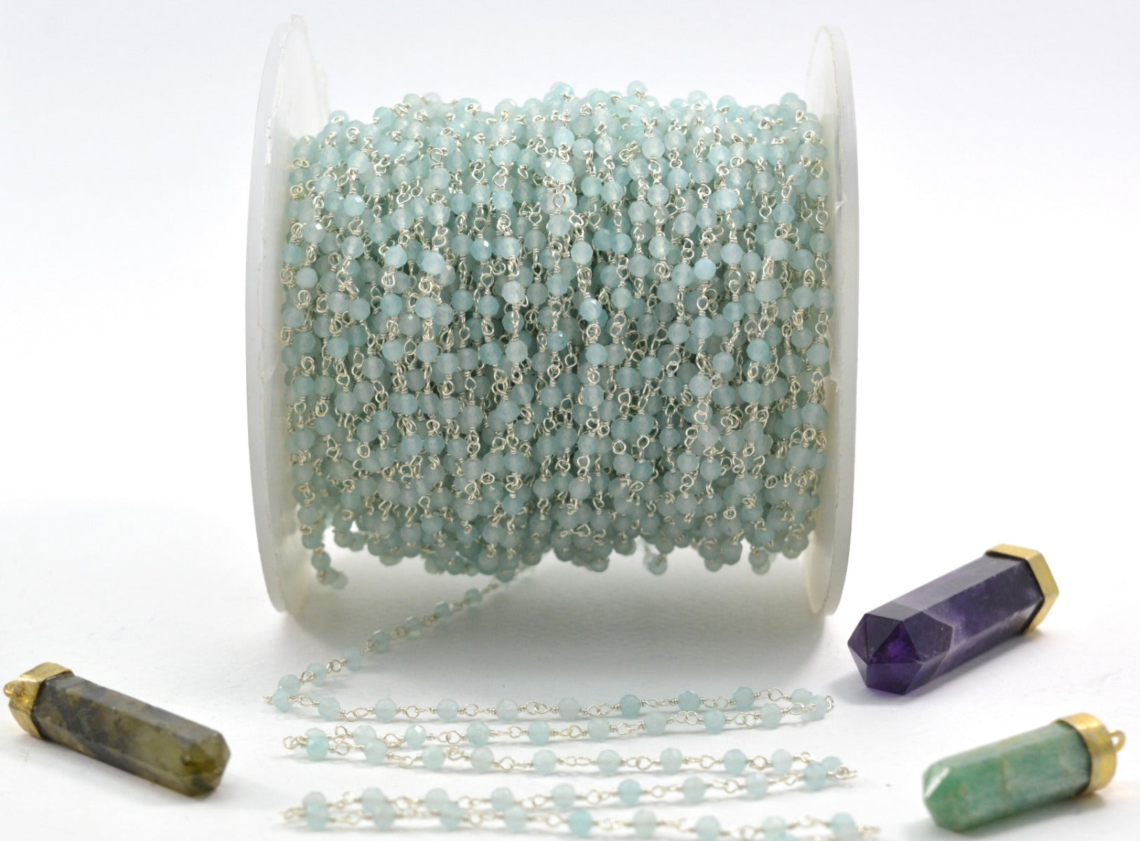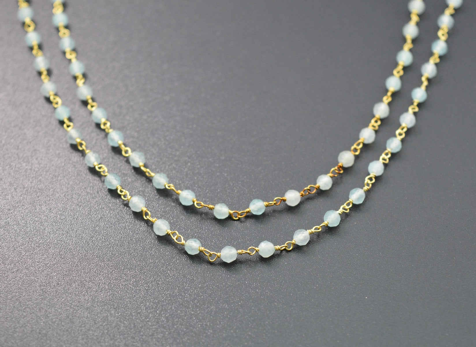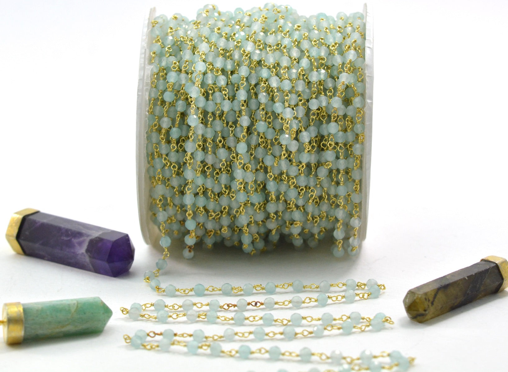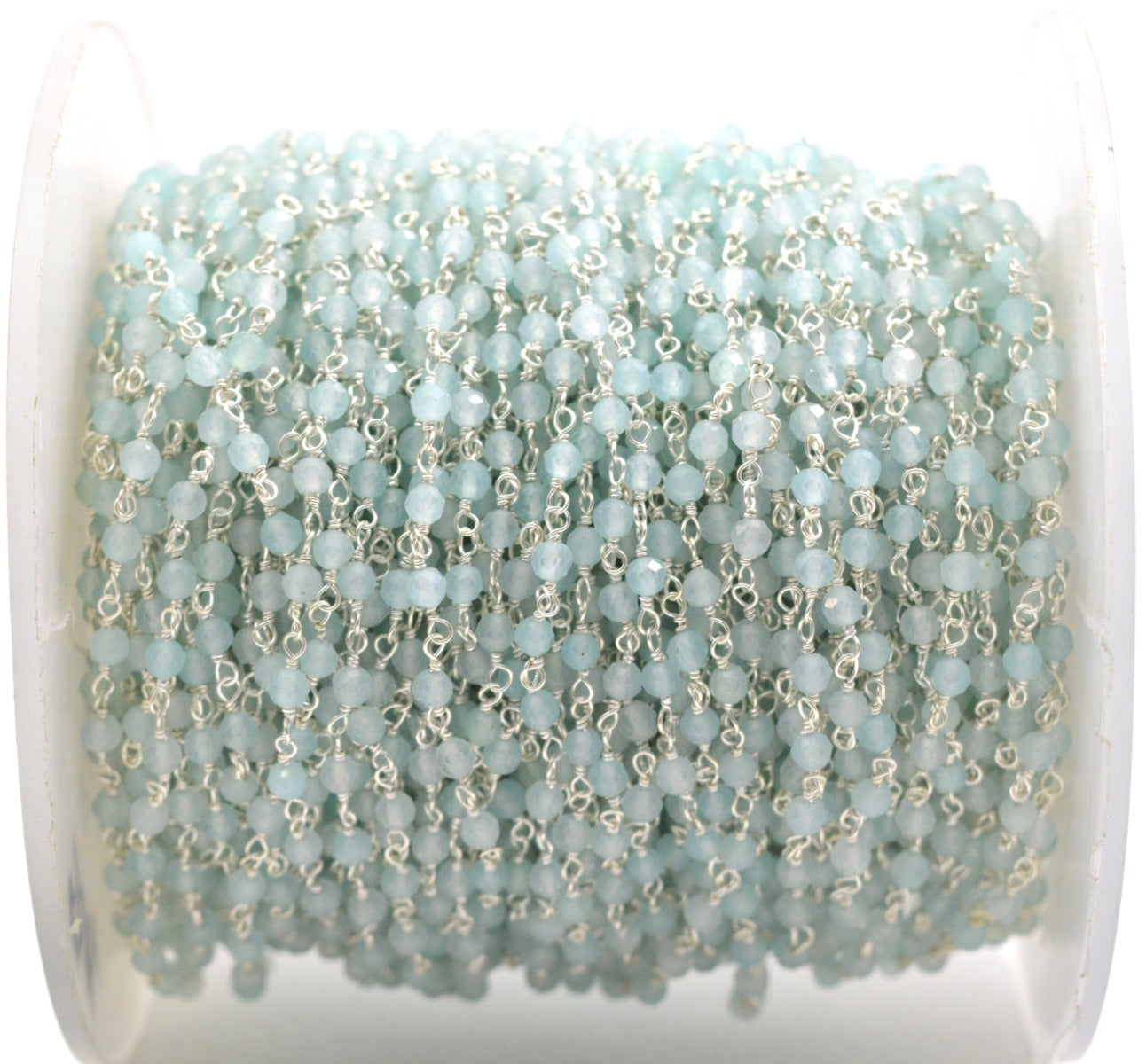 925 Silver Gold Rosary Chain with Stone - 3.50mm