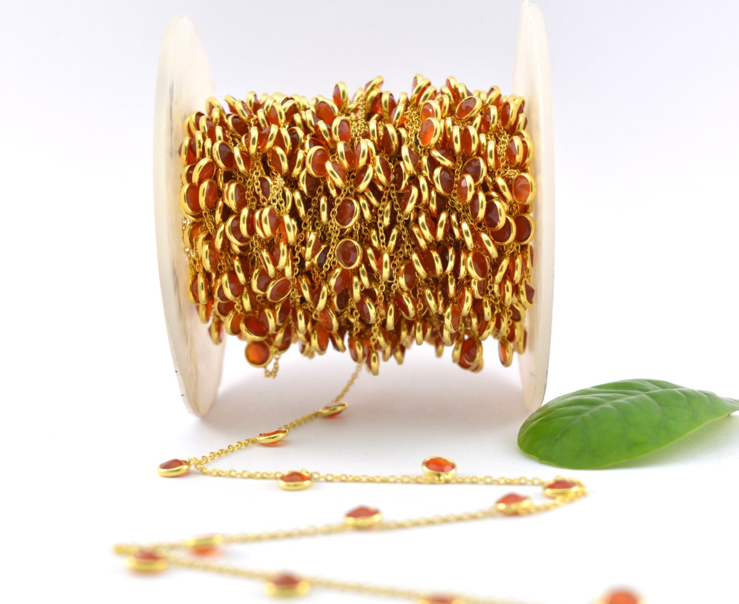 925 Silver Gold Rosary Chain with Stone - 4mm