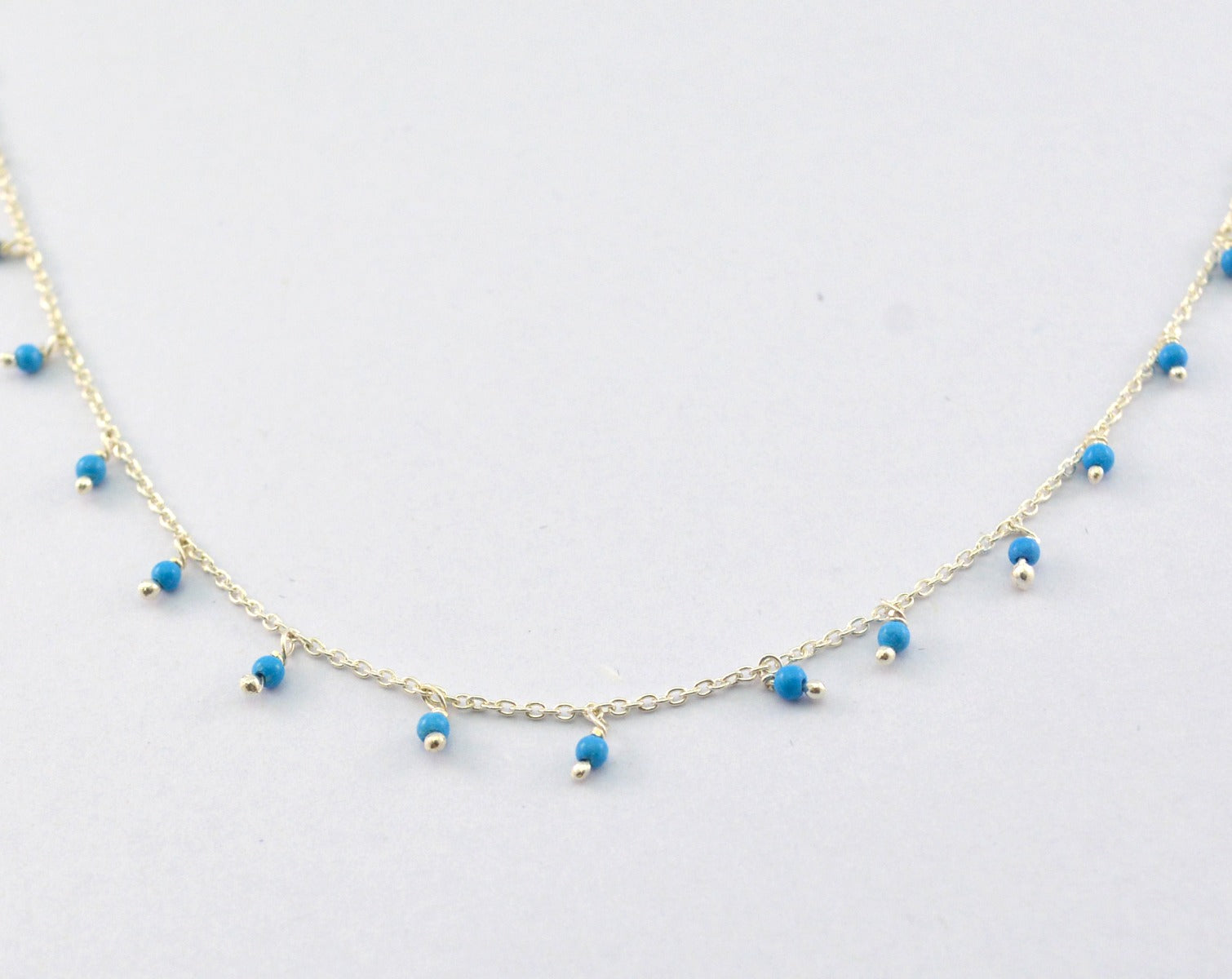 925 Silver Gold Rosary Chain with Turquoise - 2mm