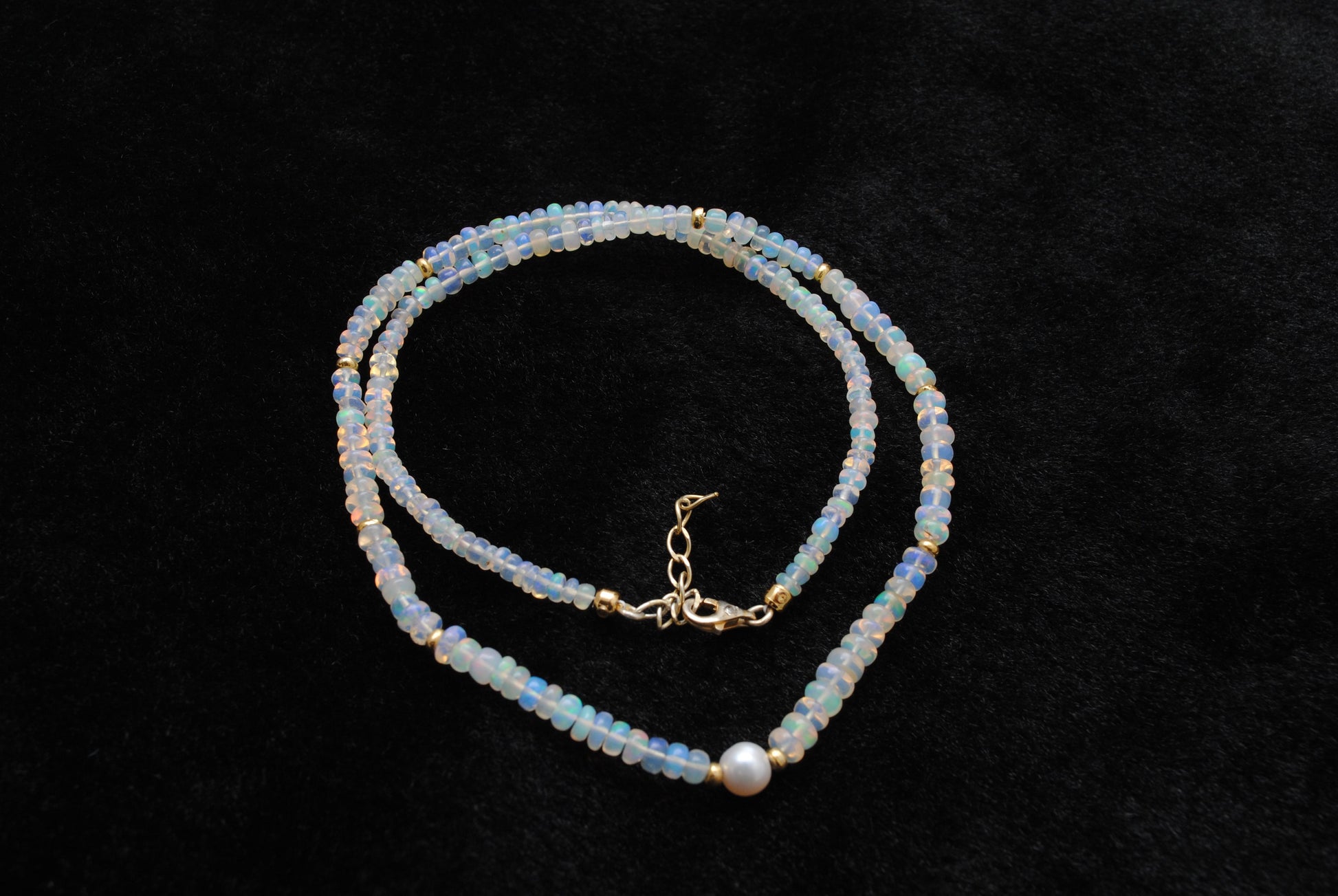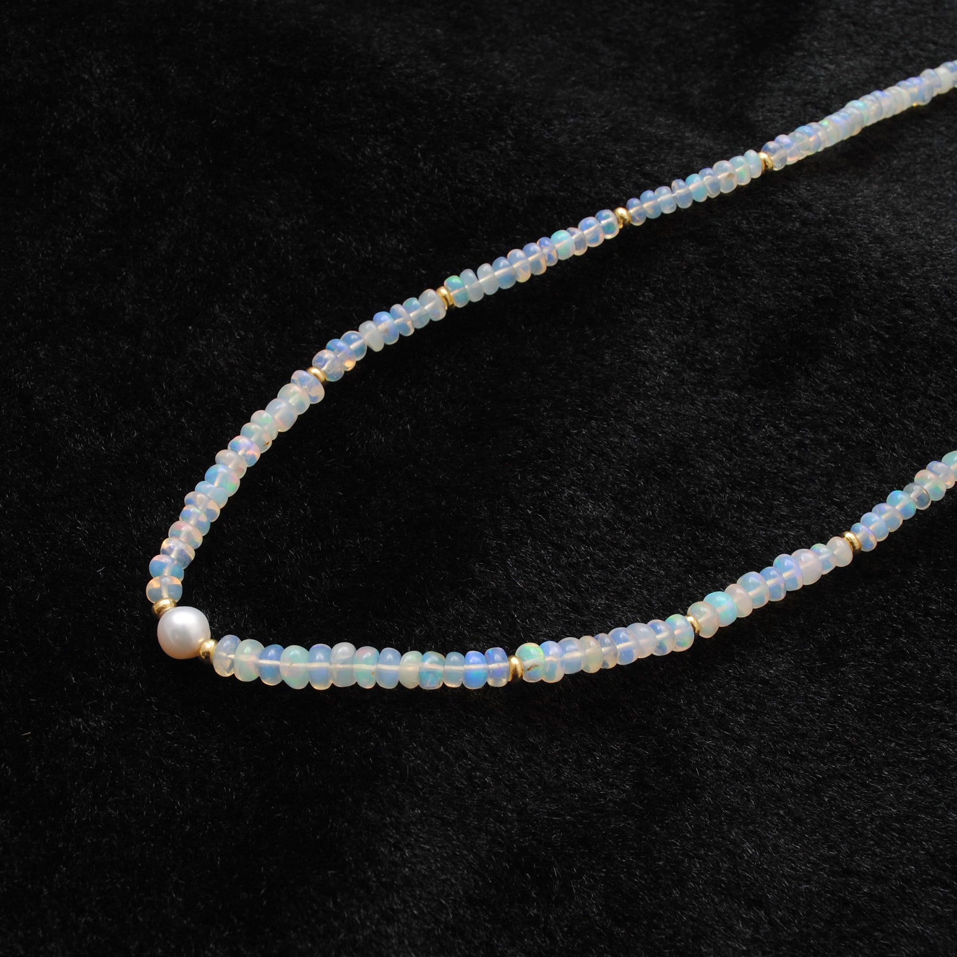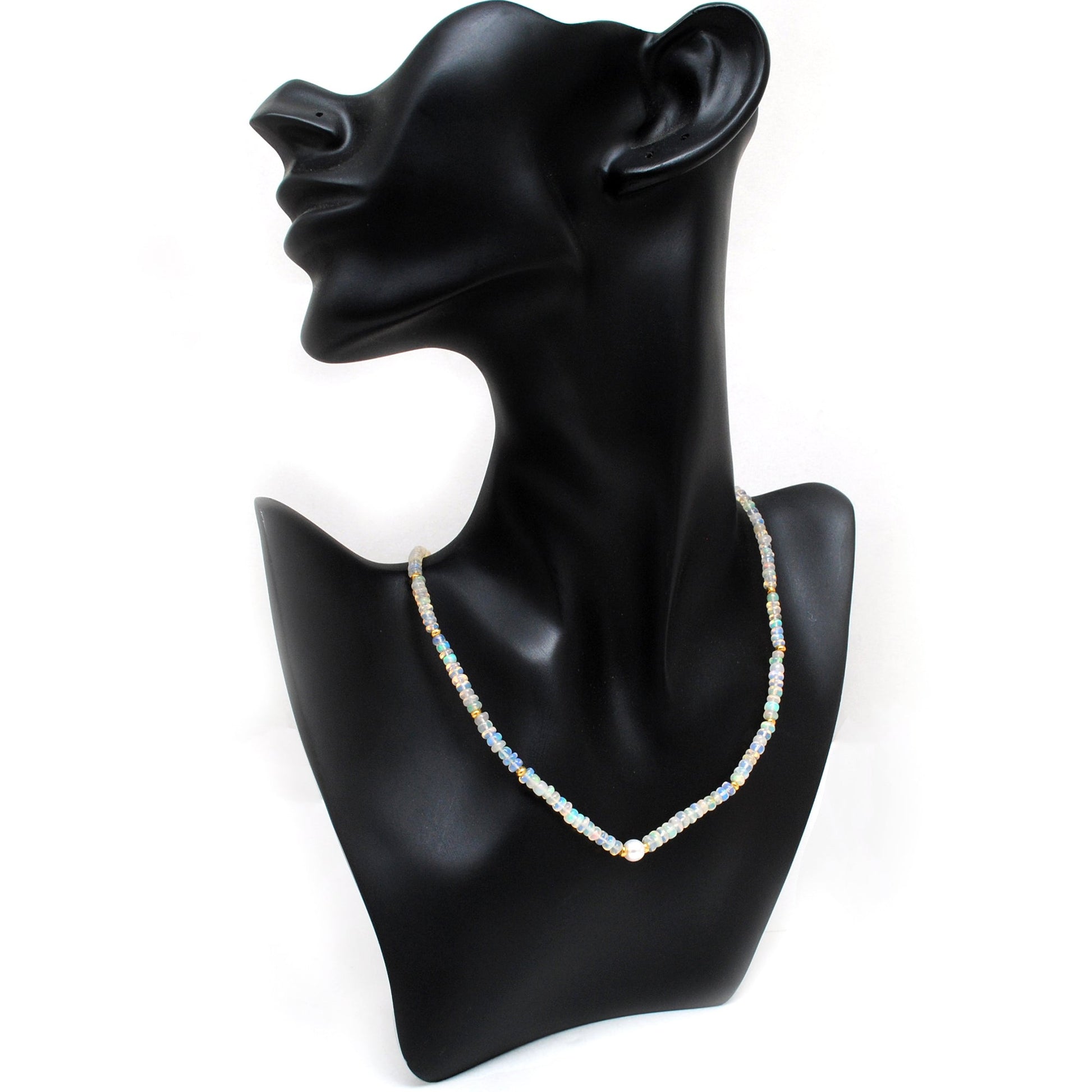 925 Sterling Silver Opal & Freshwater Pearl Beaded Necklace,