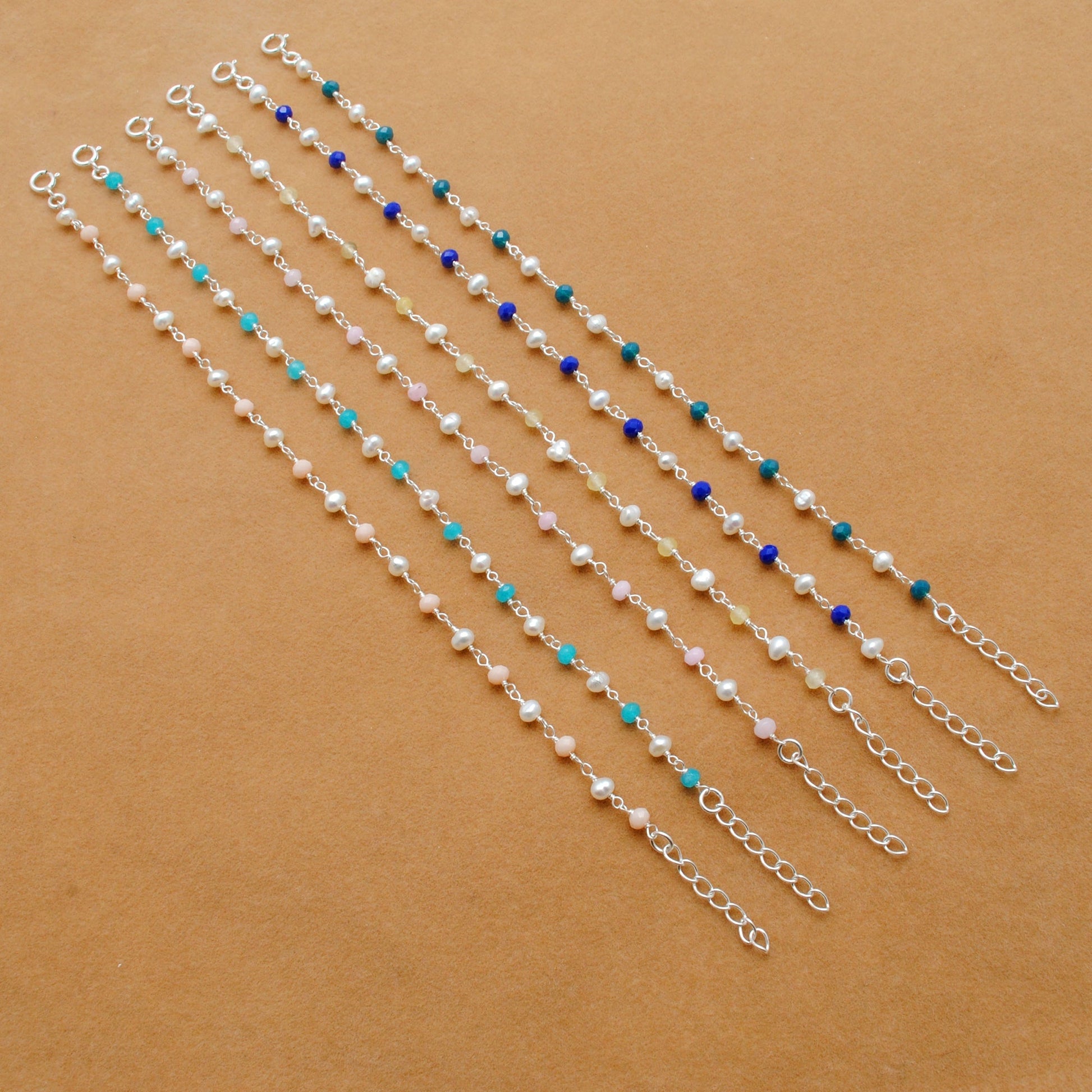 Add effortless charm to your ethnic and festive looks with this handcrafted 925 Sterling Silver bracelet, featuring a beautiful mix of Neon Apatite Chalcedony, Dark Blue Chalcedony, Yellow Quartz, Pink Quartz, Apatite Quartz, and Peach Chalcedony—each paired with a lustrous Freshwater Pearl.