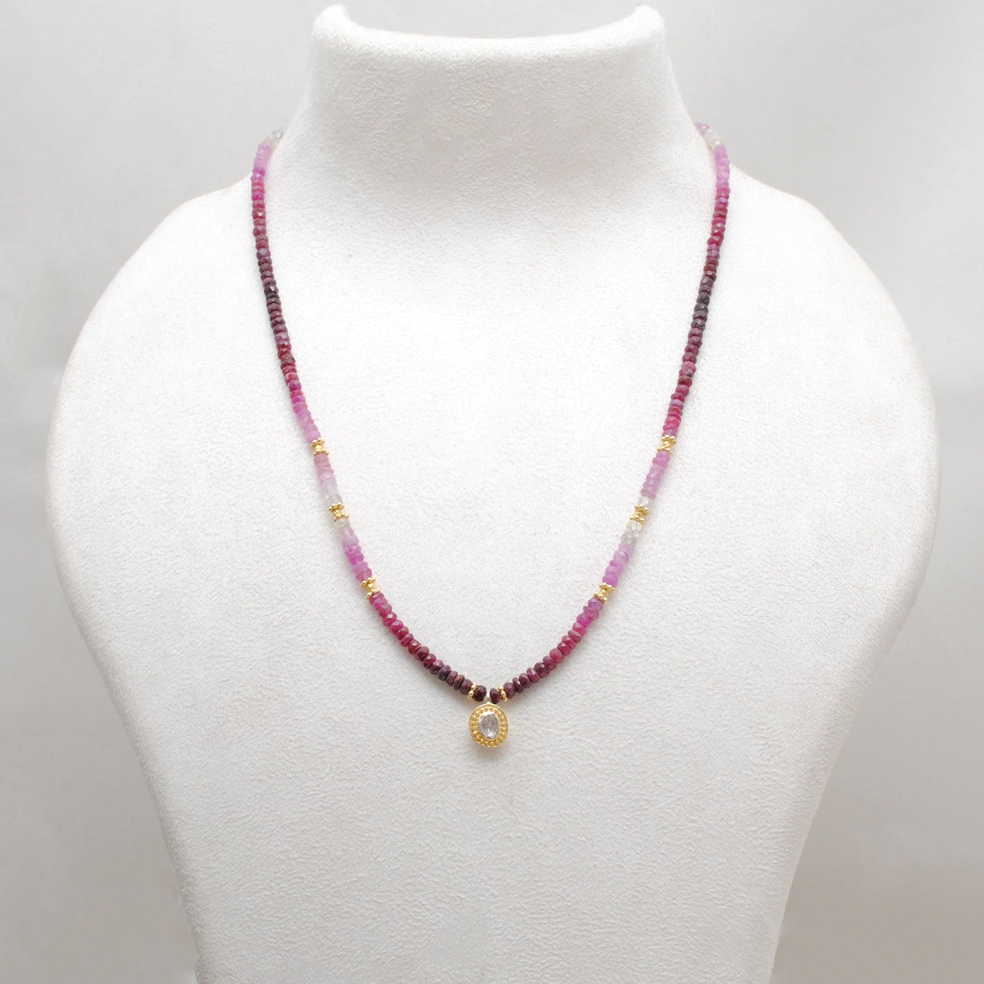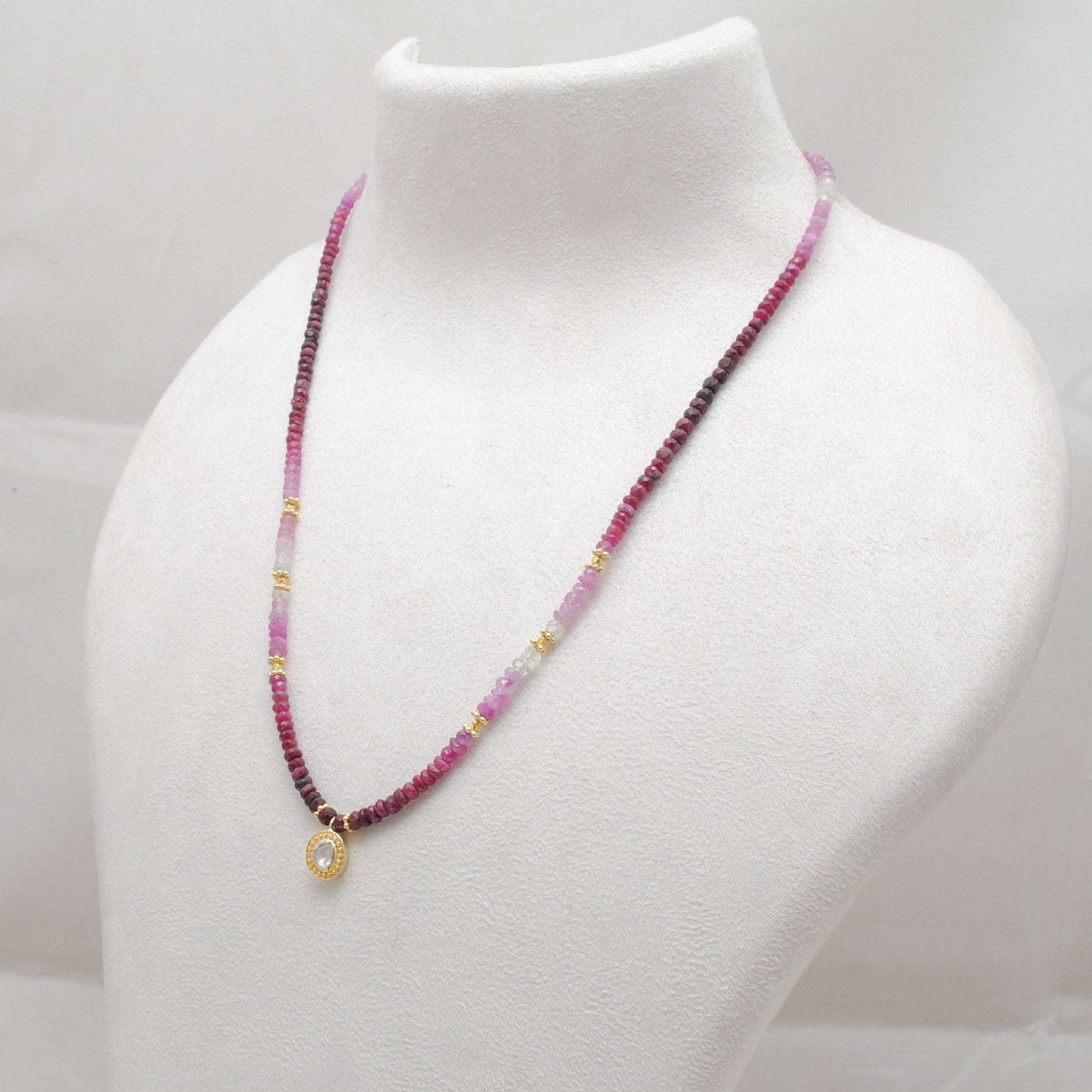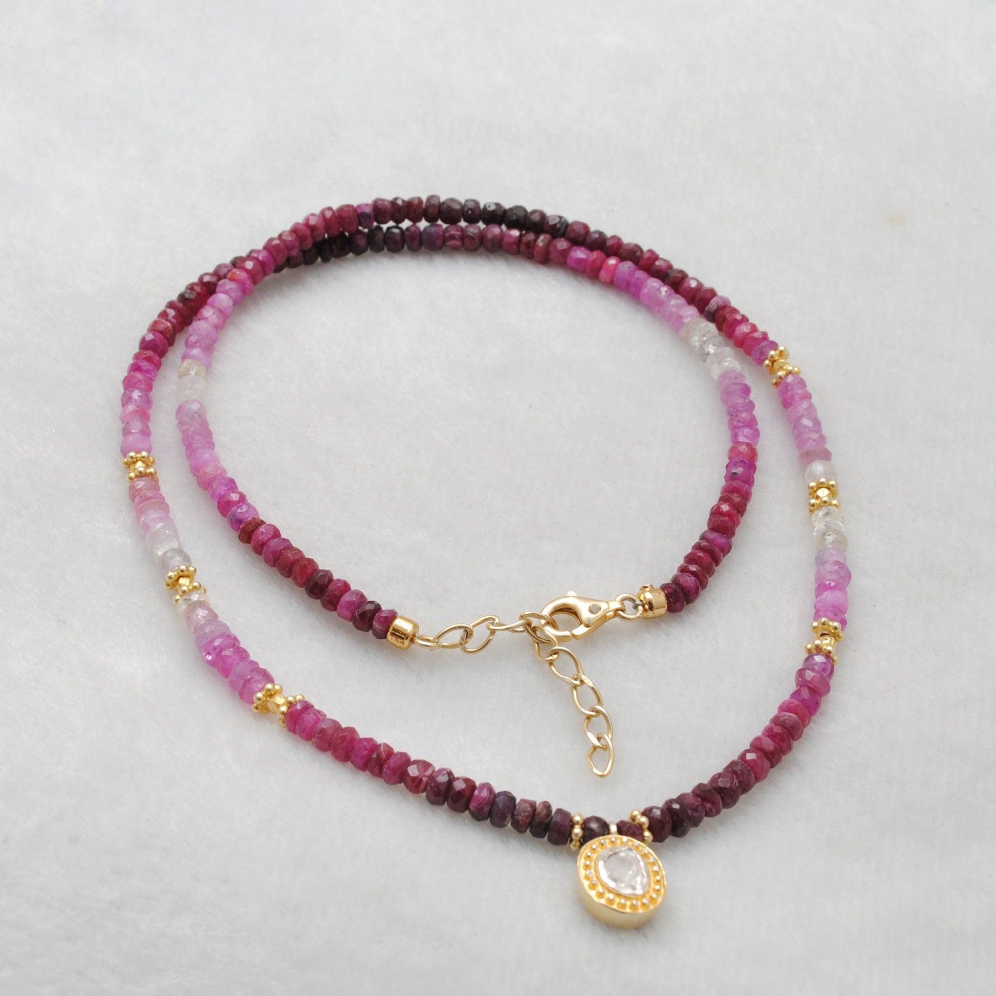 Gemstones: Ombre Ruby beads, Uncut Diamond pendant