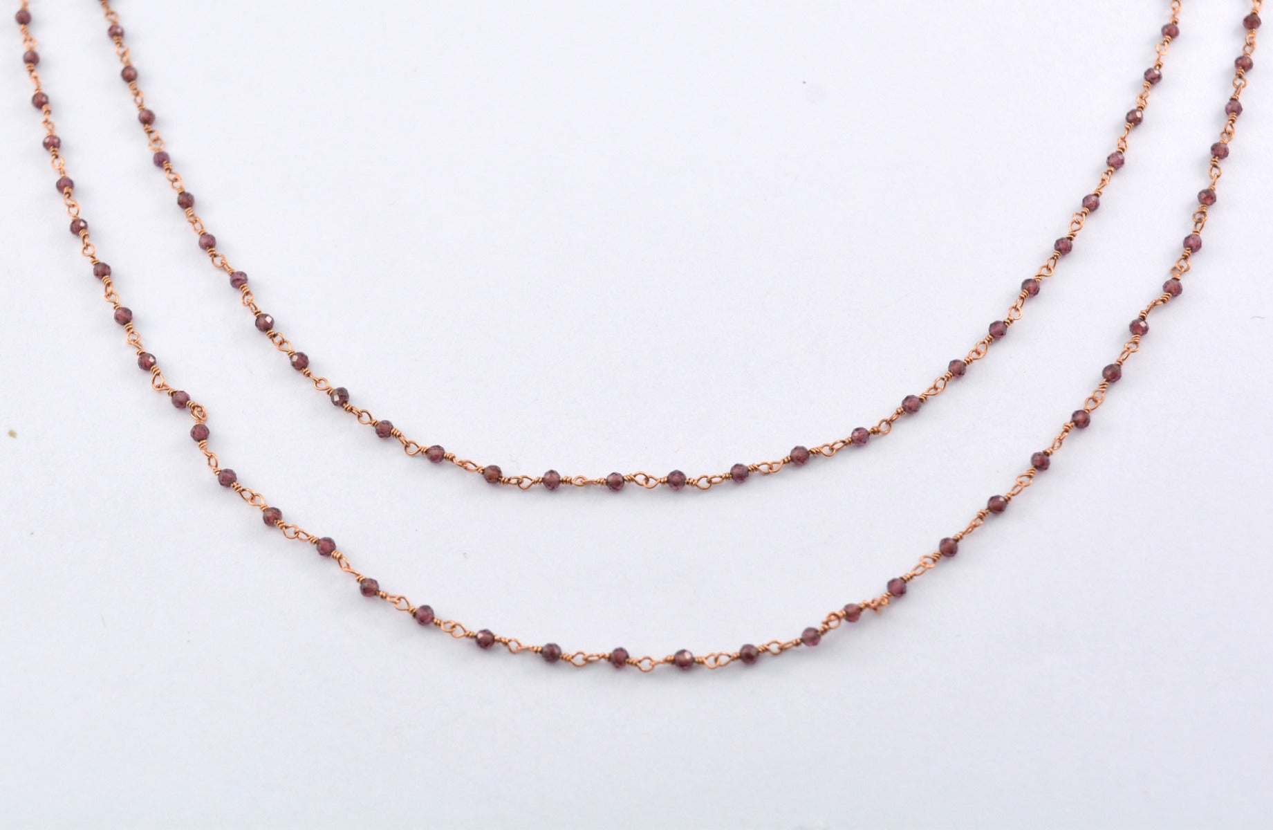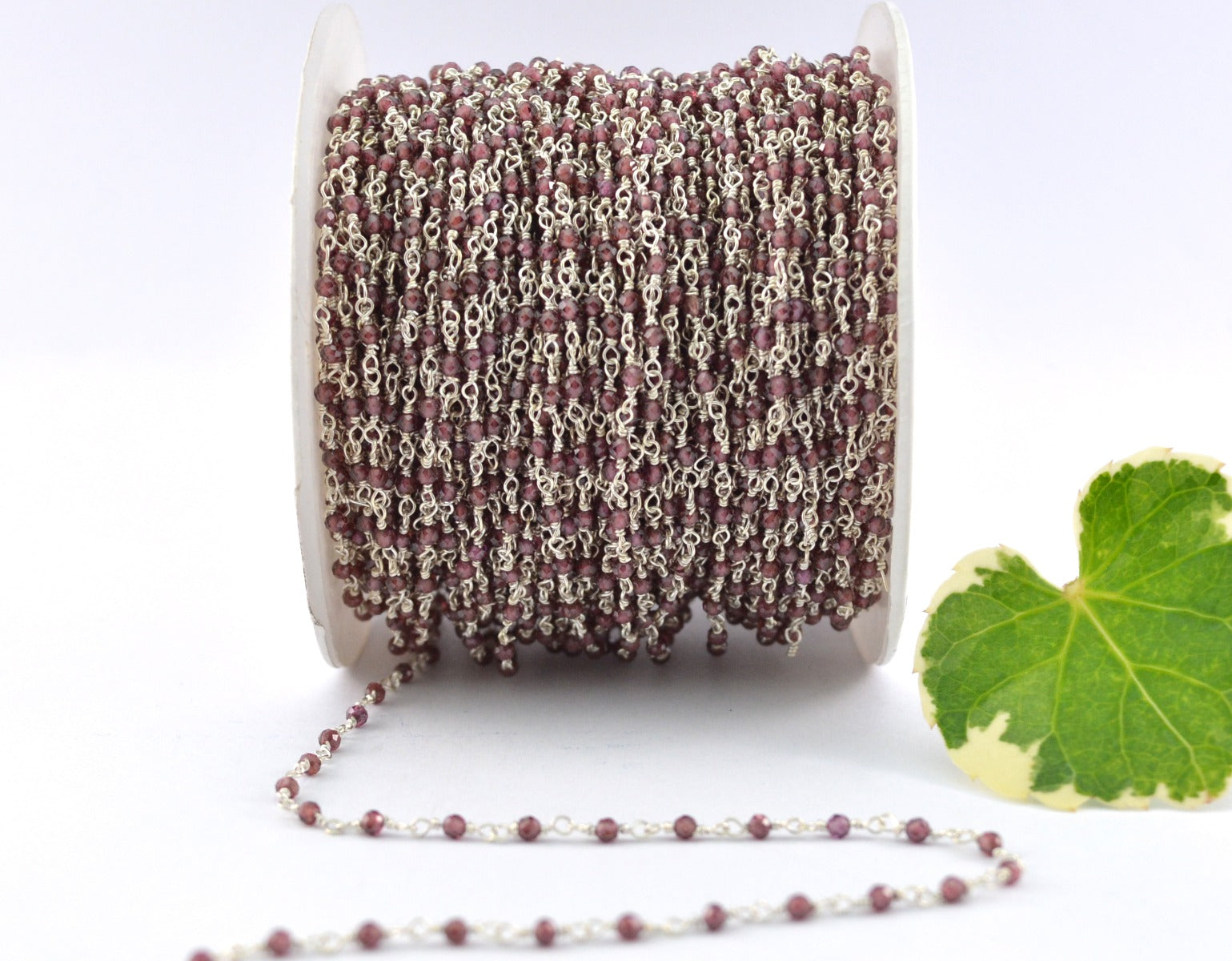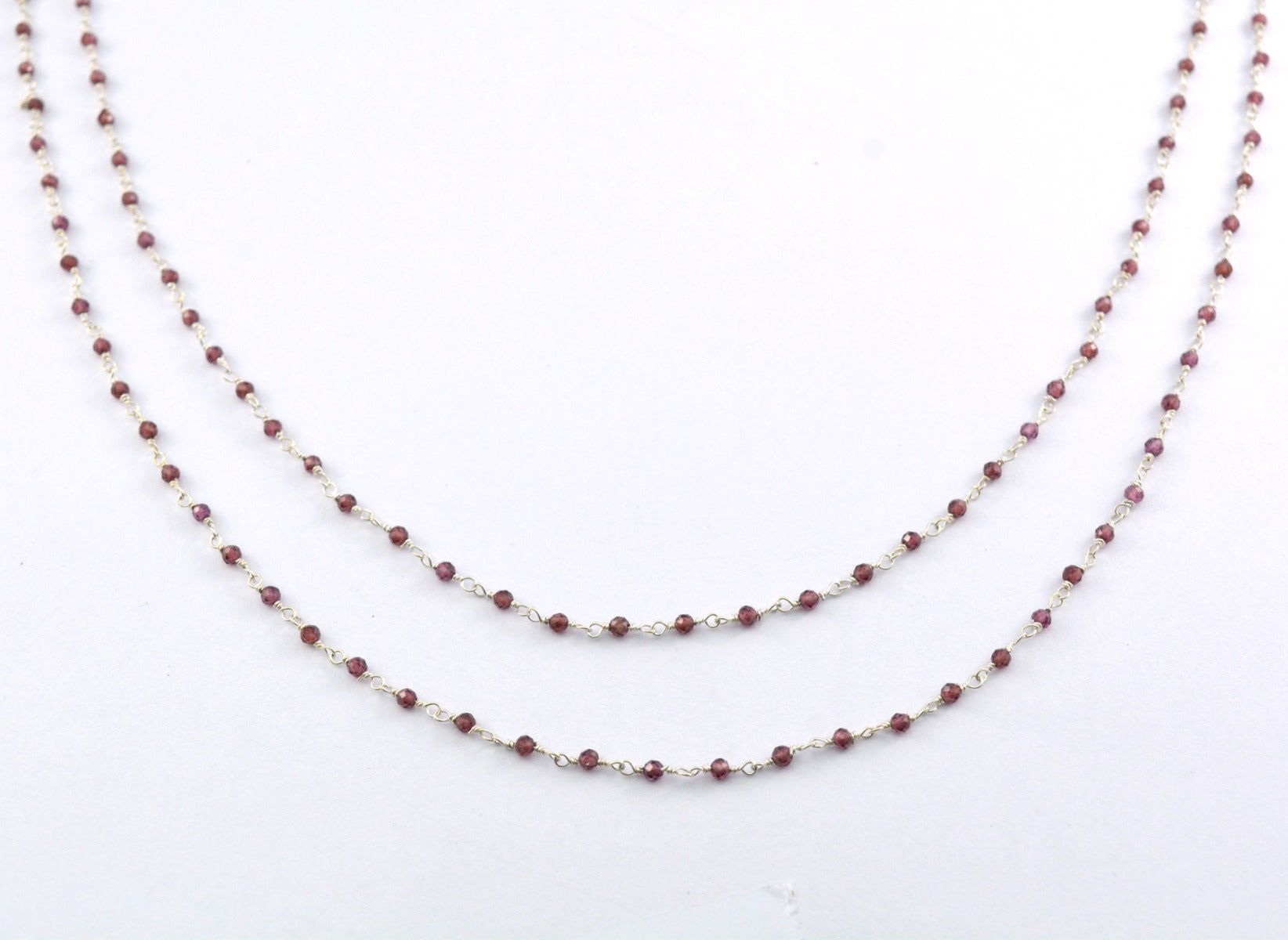 925 Silver Rosary Chain with Garnet - 2.00mm