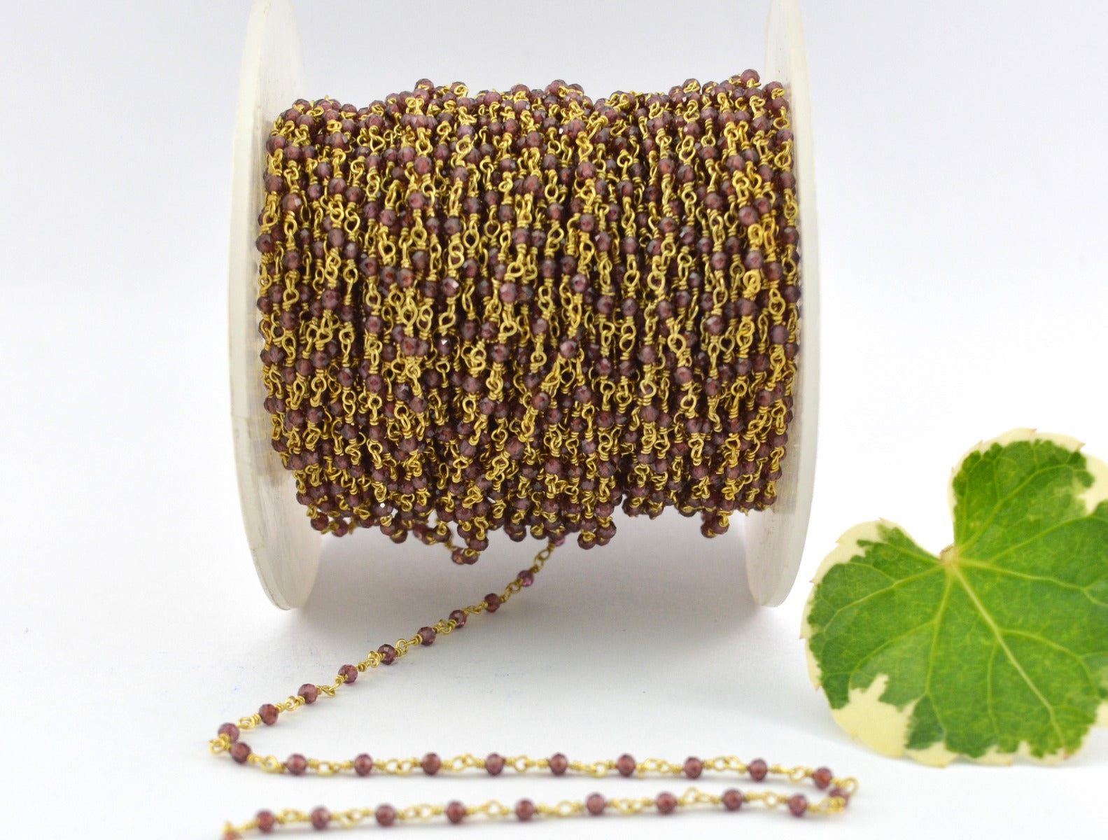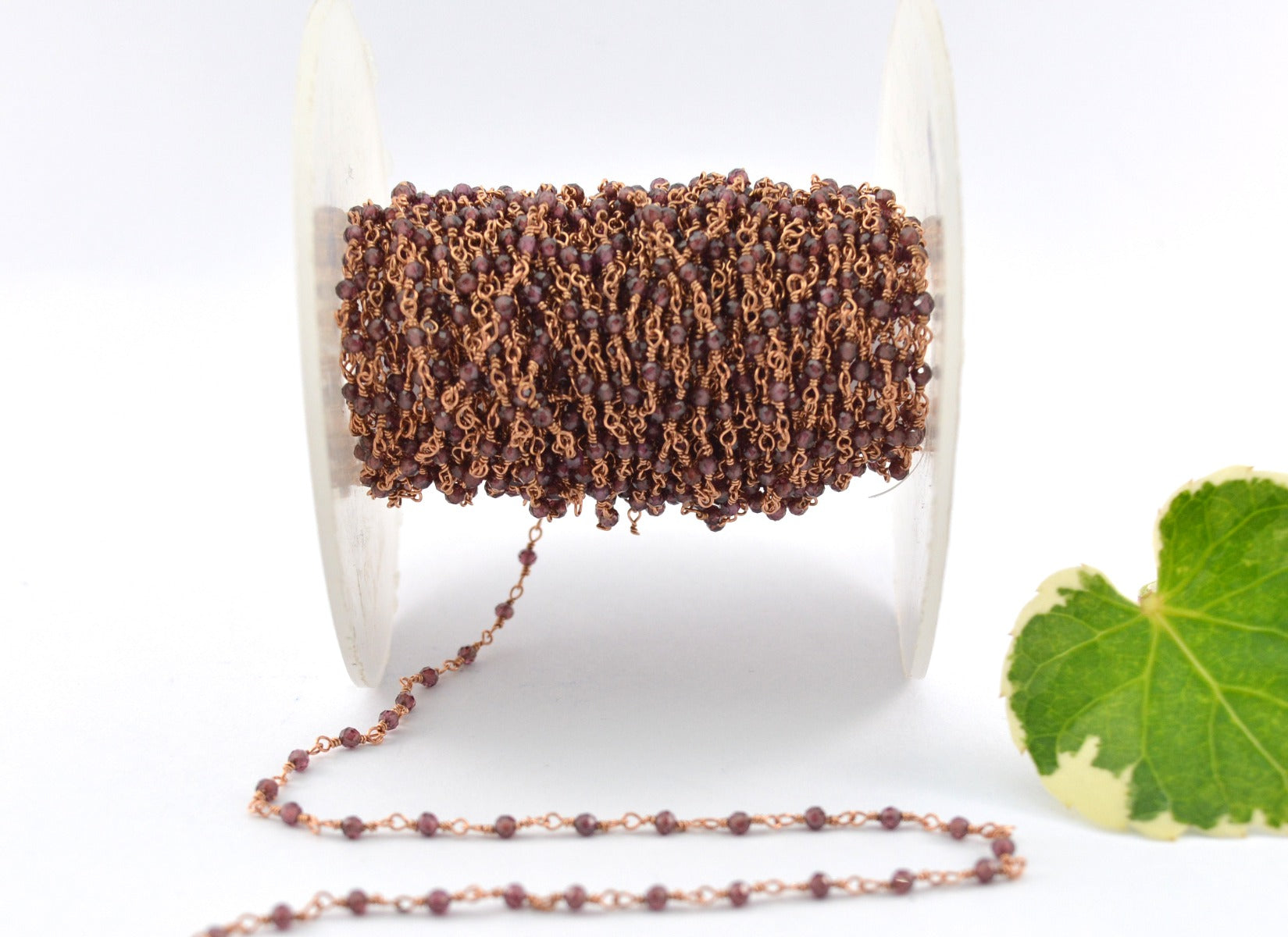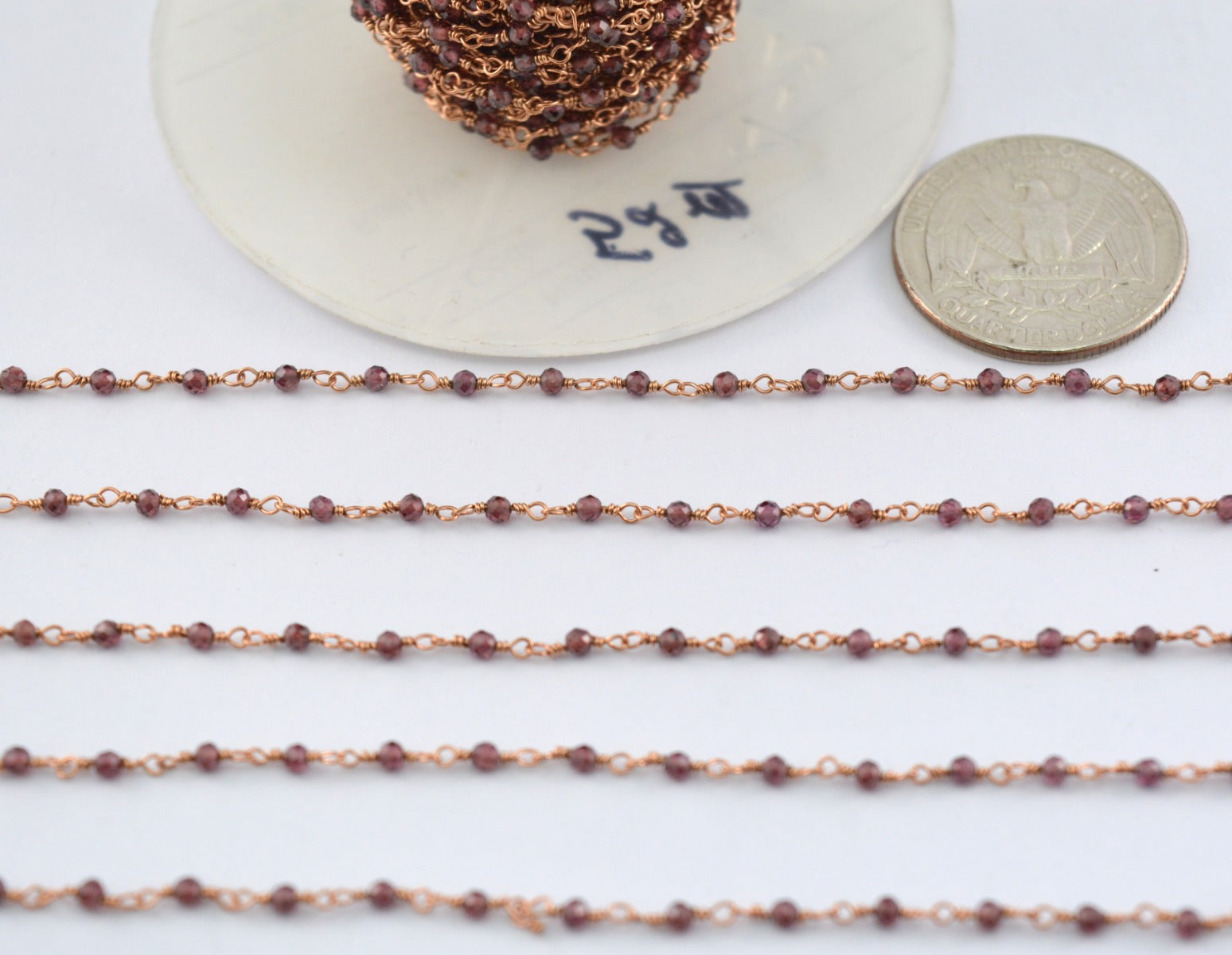 925 Silver Rosary Chain with Garnet - 2.00mm