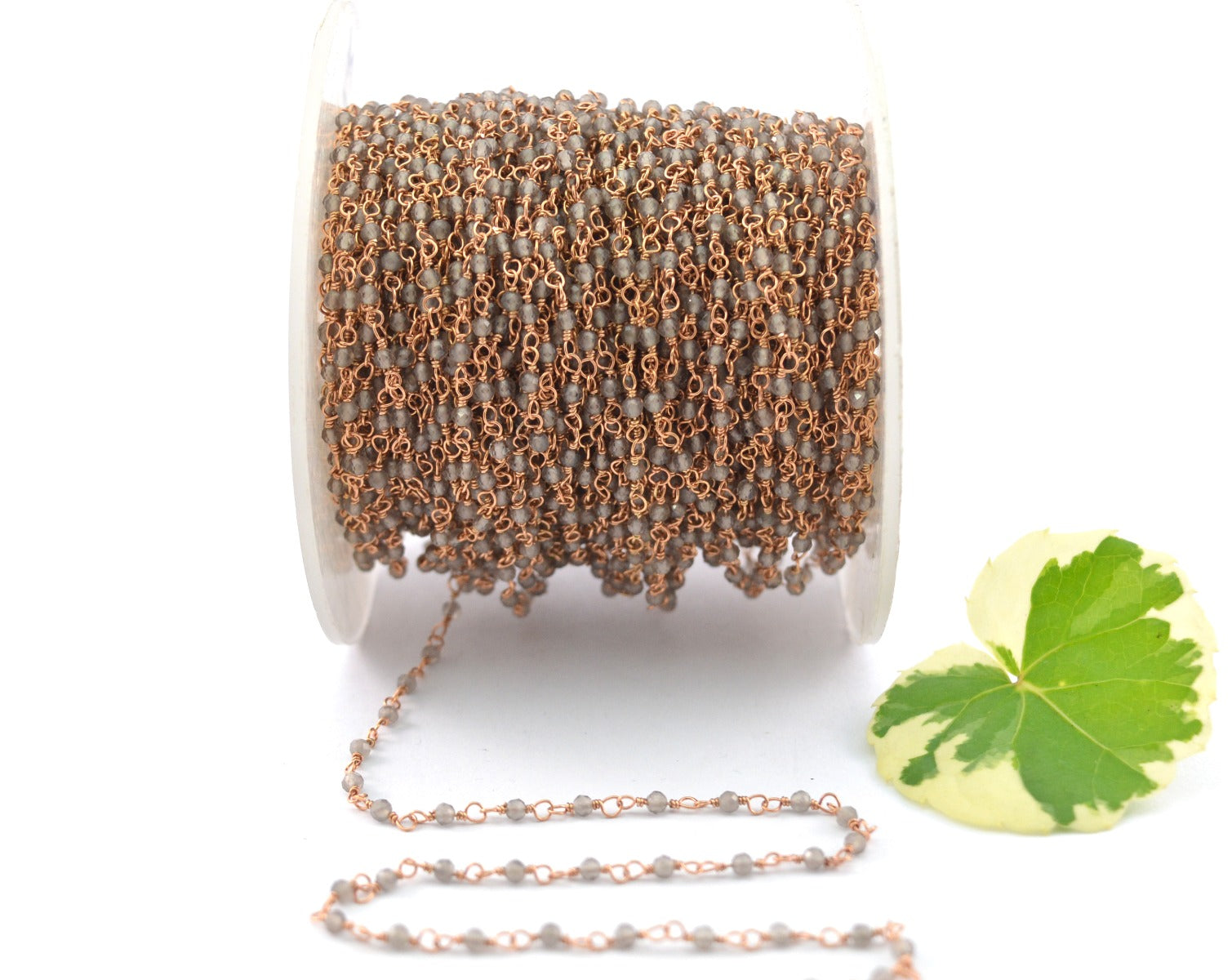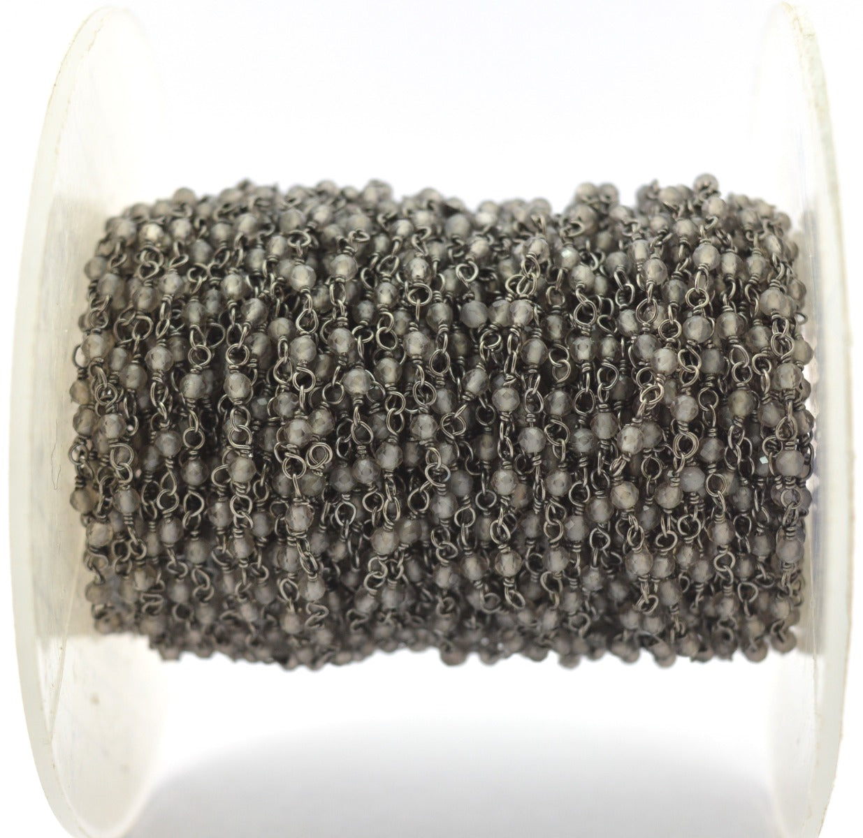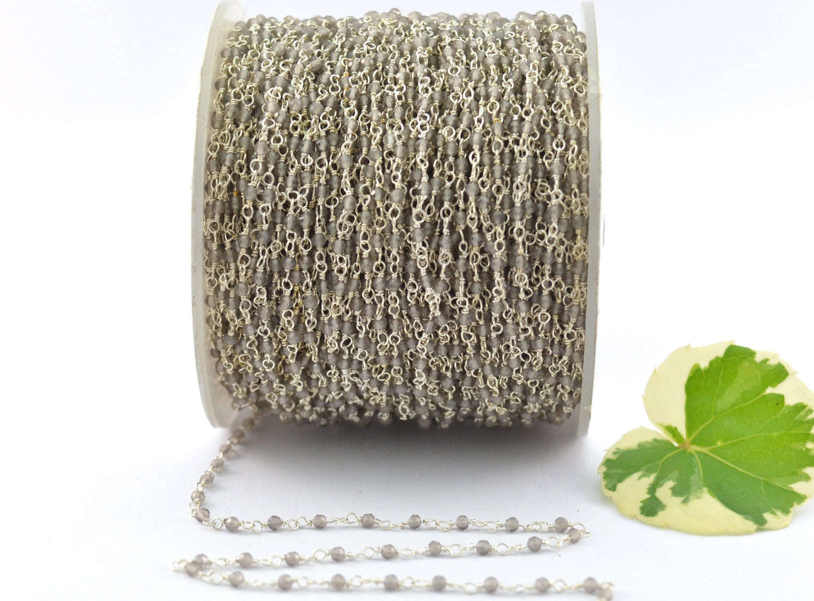 Please Complete your necklace or bracelet or chains design with amazing beads in Gray Moonstone Stone 925 Sterling Silver Round Ball Rosary Chain. Order Now !
