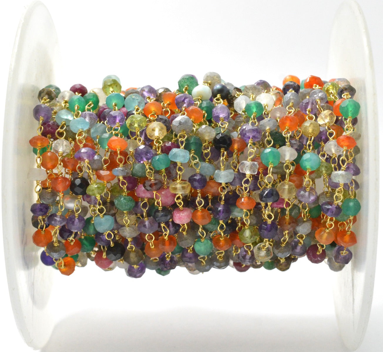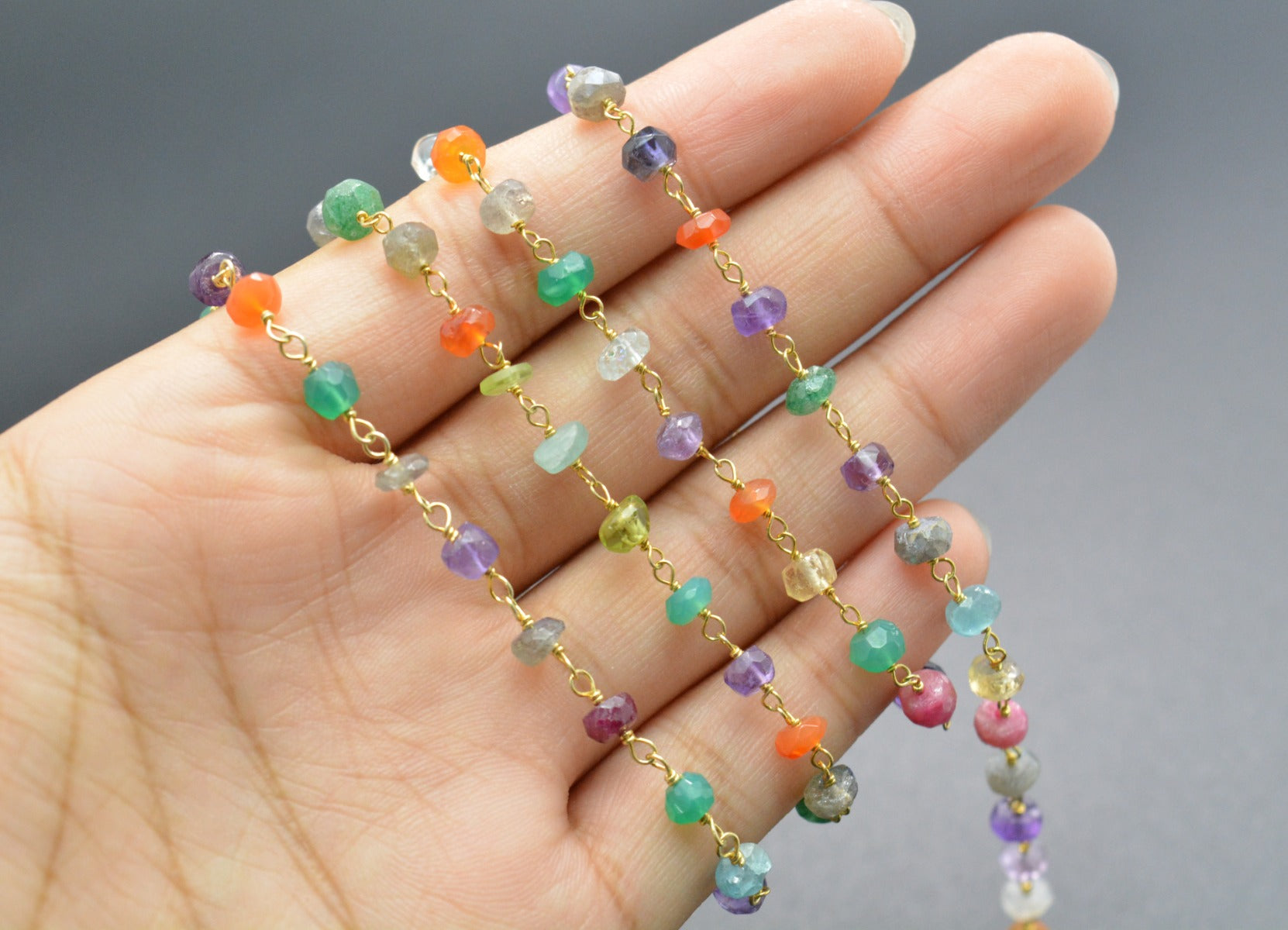925 Silver Rosary Chain with Multi Stone - 4mm