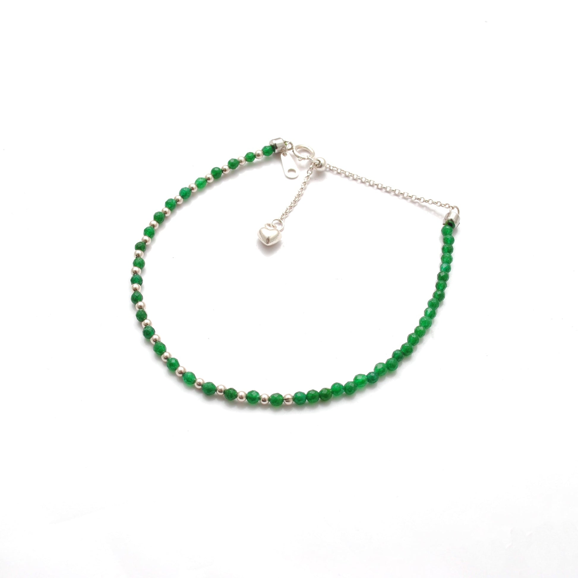 A delicate strand of natural green onyx beads, handcrafted in 925 sterling silver. This tiny charm bracelet adds elegance and a pop of vibrant green to any outfit, making it perfect for gifting on Valentine’s Day or everyday wear.