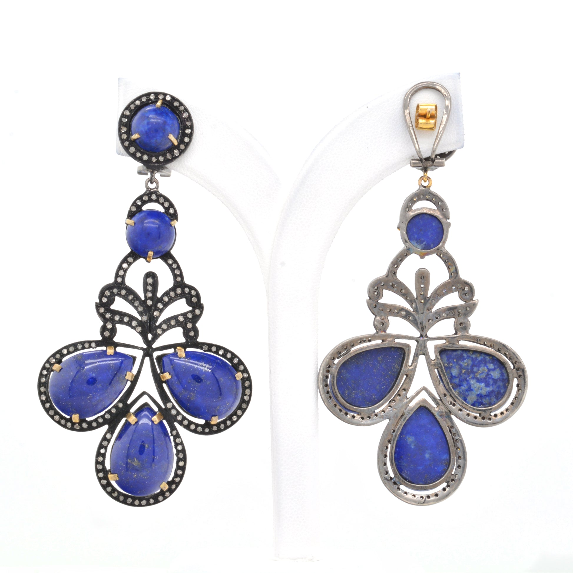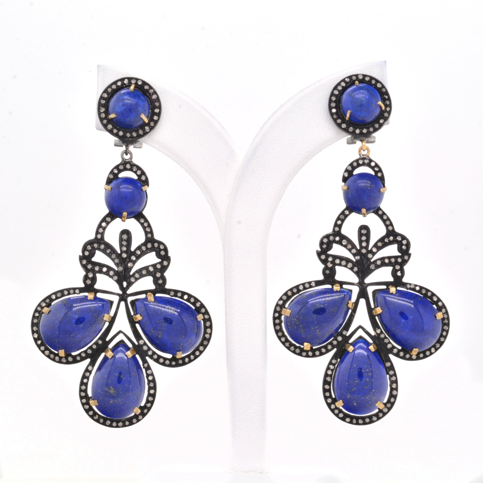 925 Sterling Silver Handcrafted Lapis Lazuli Chandelier Drop Earrings