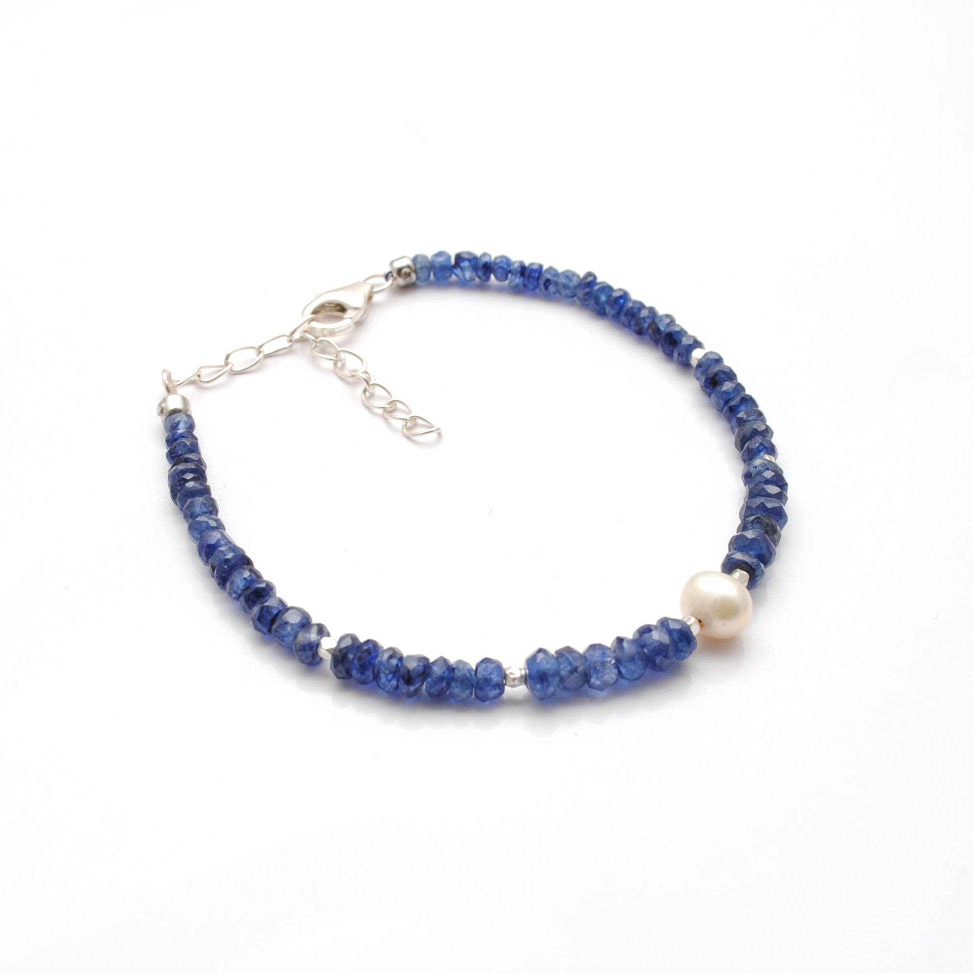 925 Sterling Silver Kyanite & Pearl Beaded Bracelet – Dainty Gift