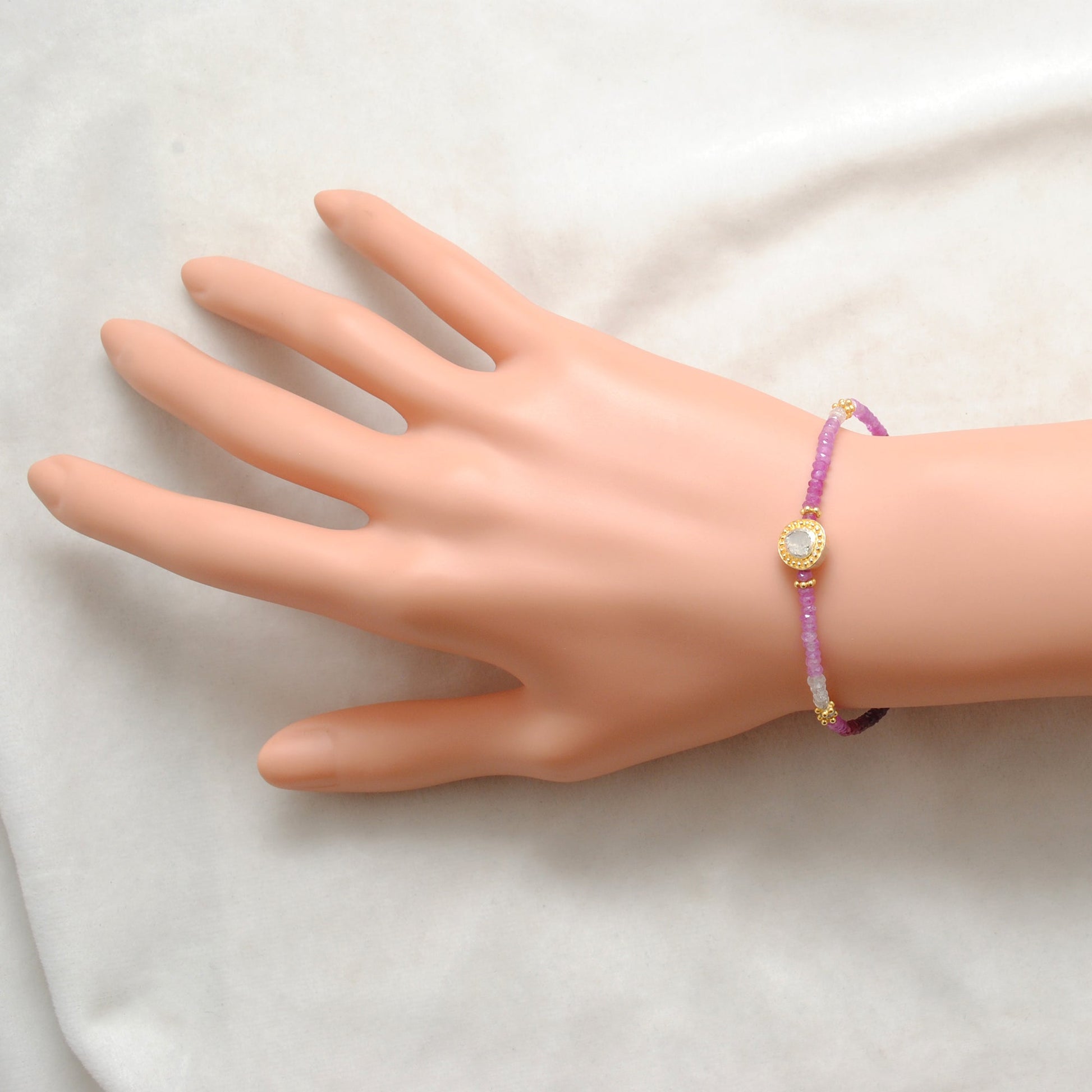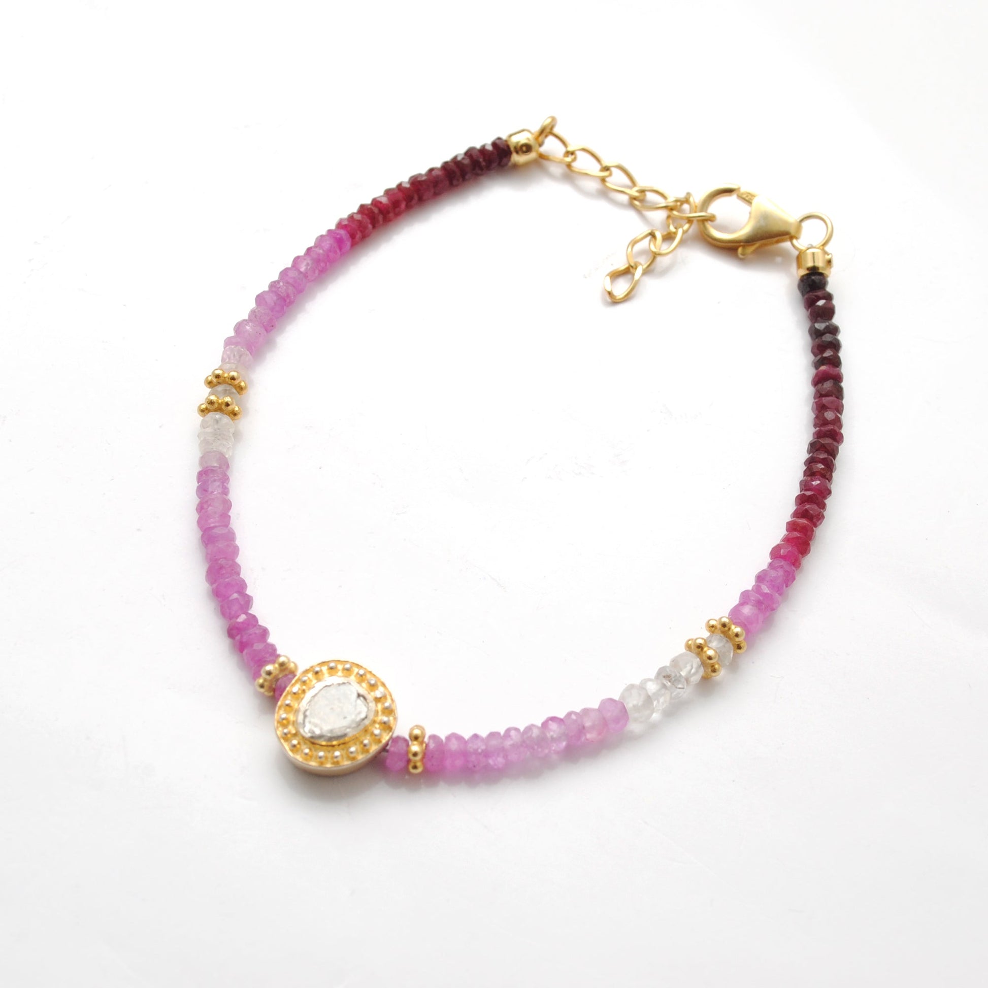 A colorful blend of natural shaded ruby gemstones accented with sparkling diamonds, this handcrafted bracelet in 925 sterling silver exudes elegance and charm. Perfect for adding vibrance to everyday wear or as a meaningful gift.