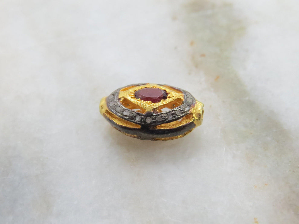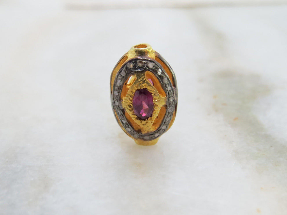 925 Sterling Silver Pave Diamond Multi-Gemstone Oval Beads