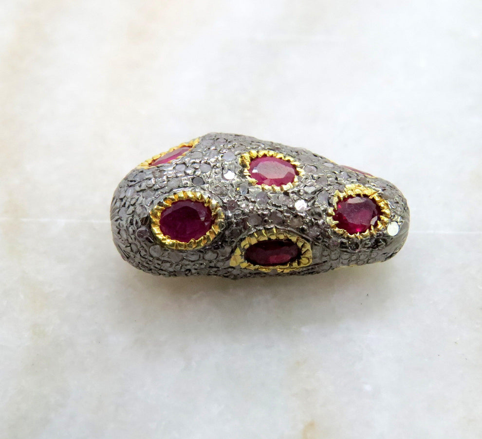 Sterling Silver Pave Diamond & Ruby Spacer Bead