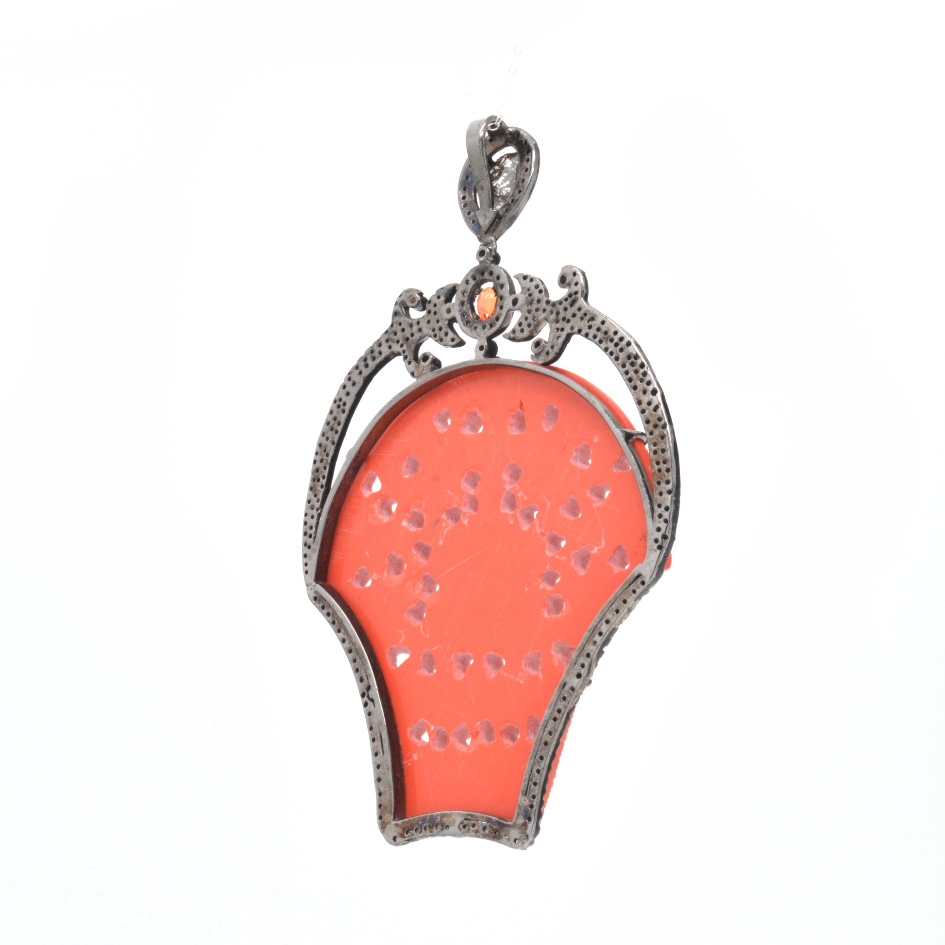 925 Sterling Silver Striking Coral Carved Pendant
