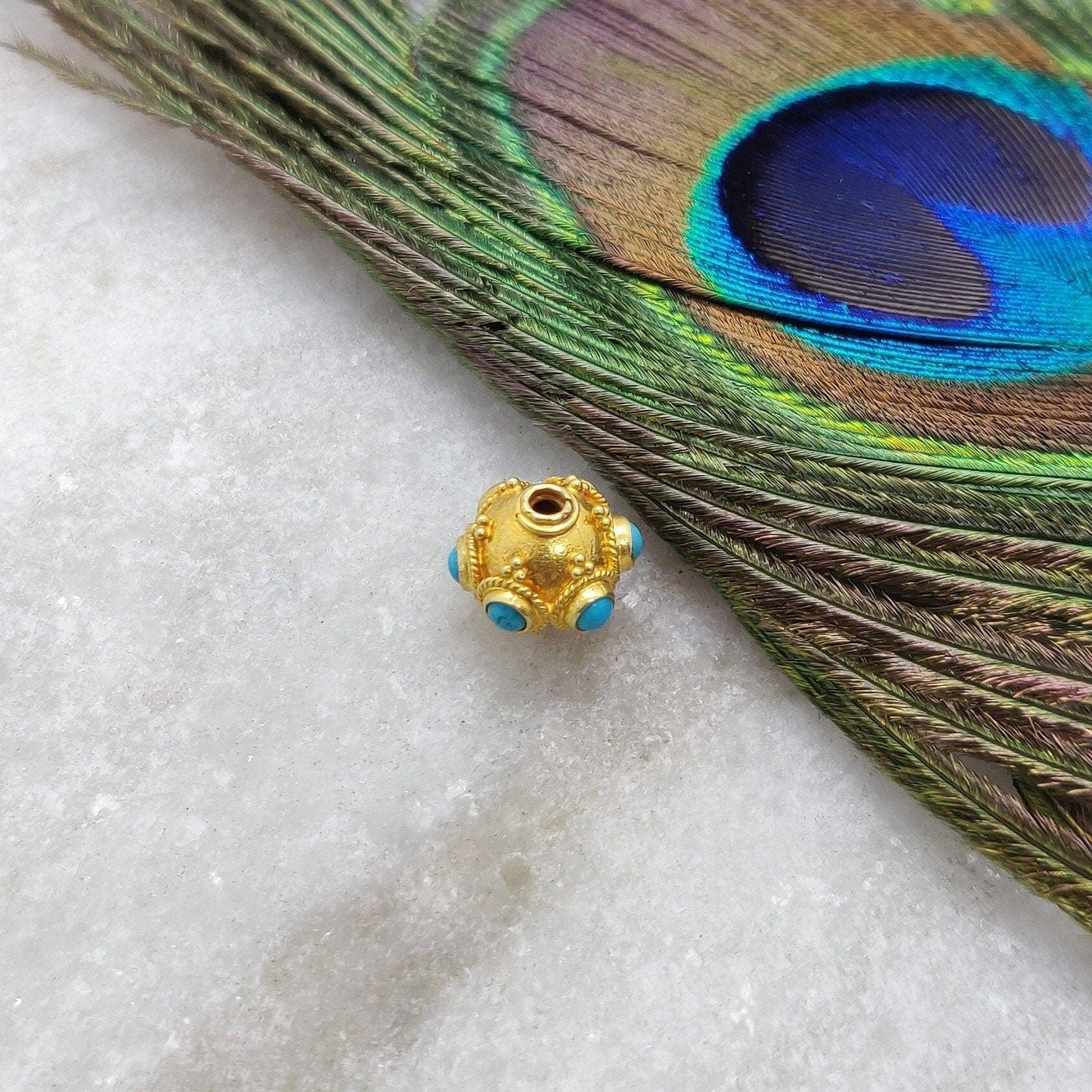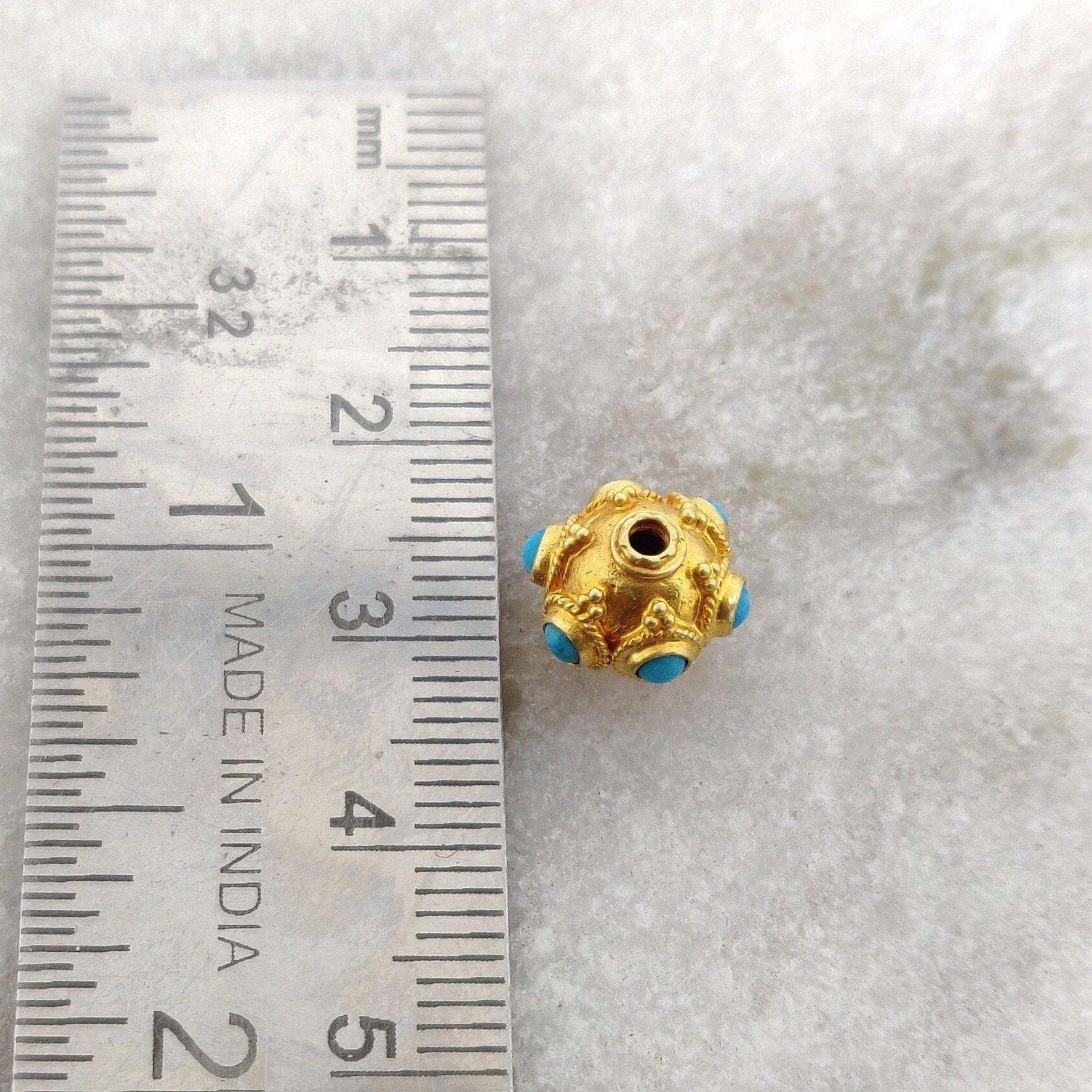 Expertly crafted, this 9mm 18k Solid Gold Turquoise Spacer Bead Finding is a must-have for any jewelry maker. Featuring a beautiful turquoise stone, this spacer bead adds a touch of elegance to any design.