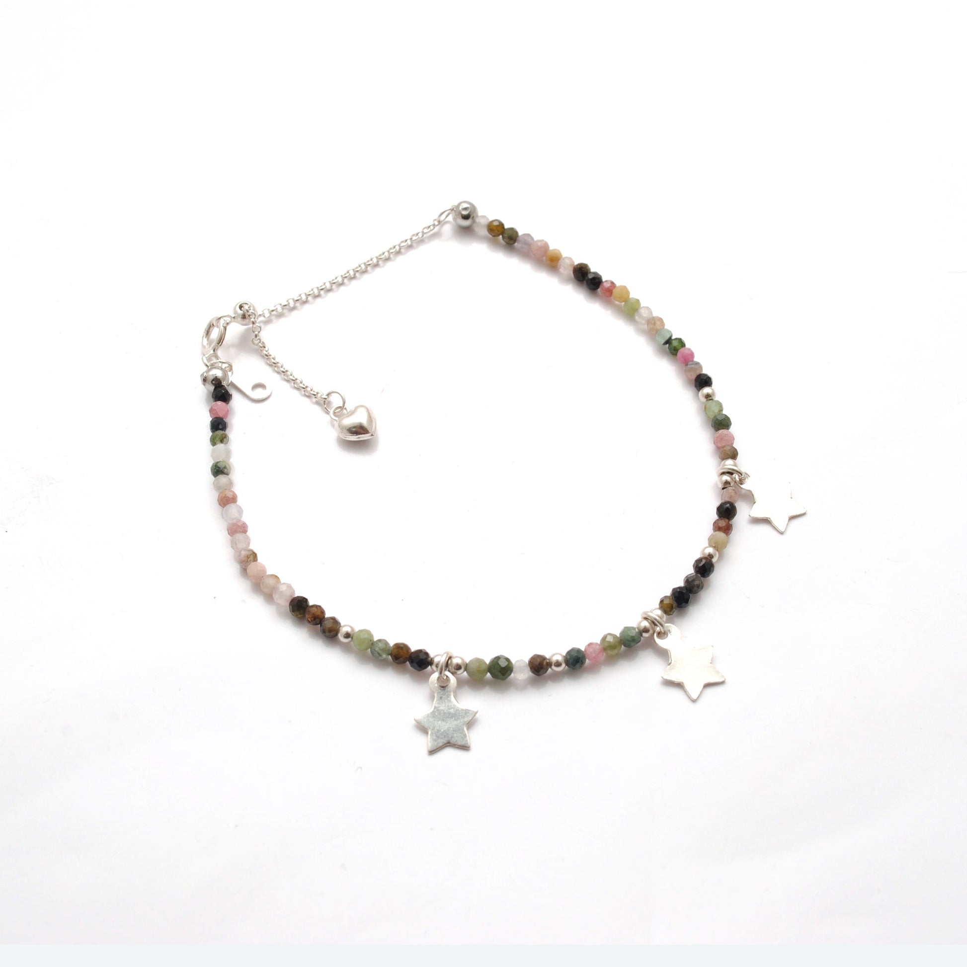 Multi Tourmaline 2mm Silver Charm Bracelet Christmas Gift