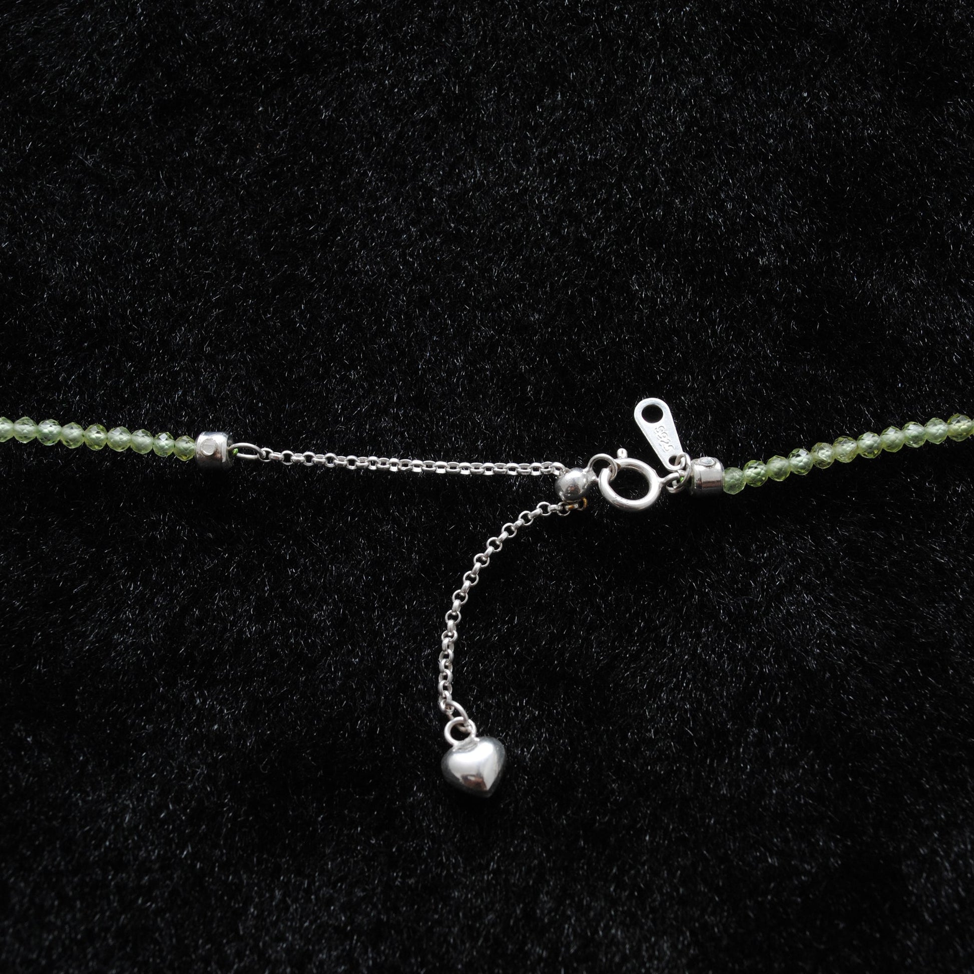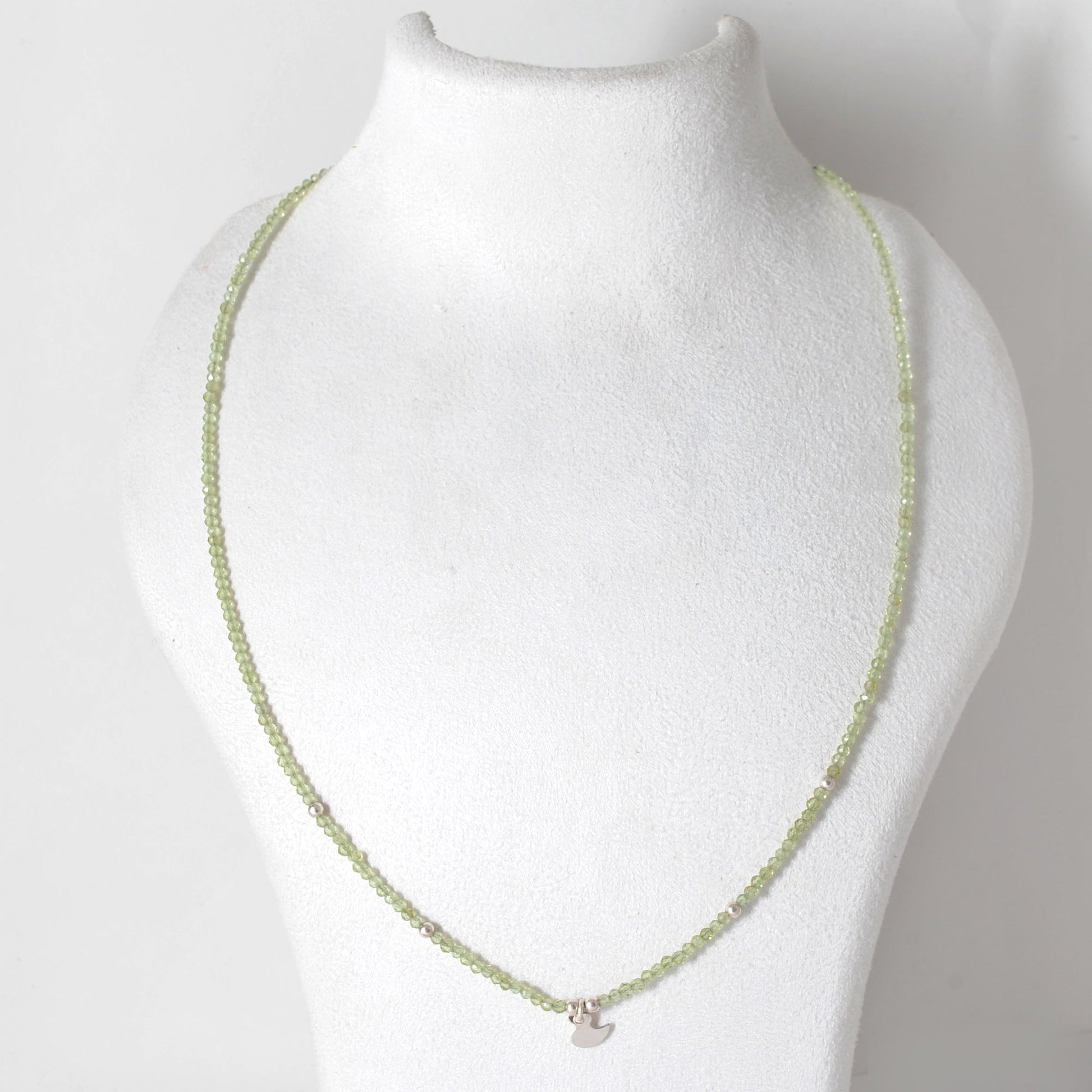 This professional-grade Peridot Rondelle Beaded Necklace is finely crafted with 2mm beads for a delicate yet elegant touch. The peridot gemstones provide a vibrant pop of color and offer a 99.9% chemical purity, ensuring a flawless and durable piece. Perfect for all occasions.