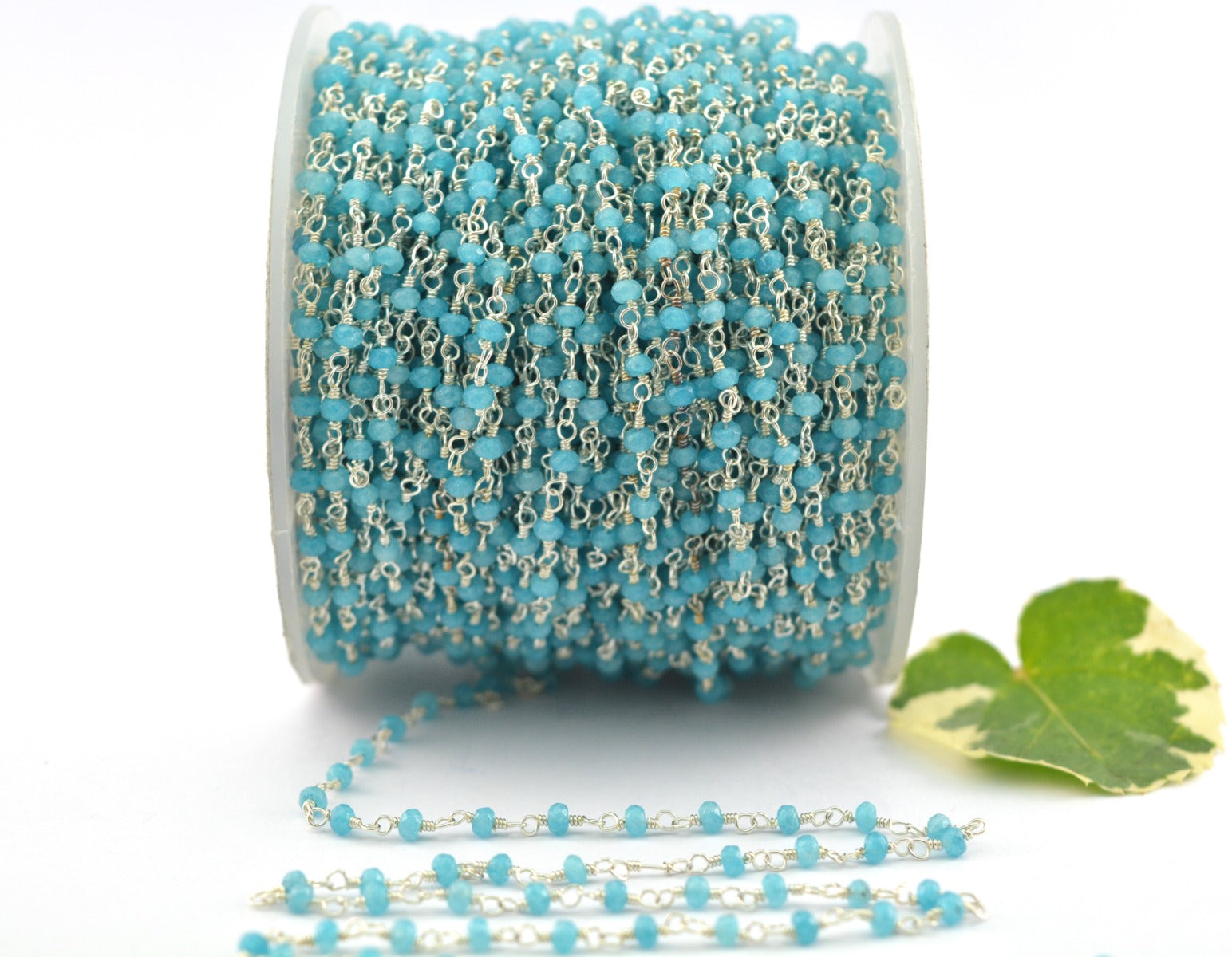 Amazonite Rosary Chain - 925 Silver Gold, 2mm