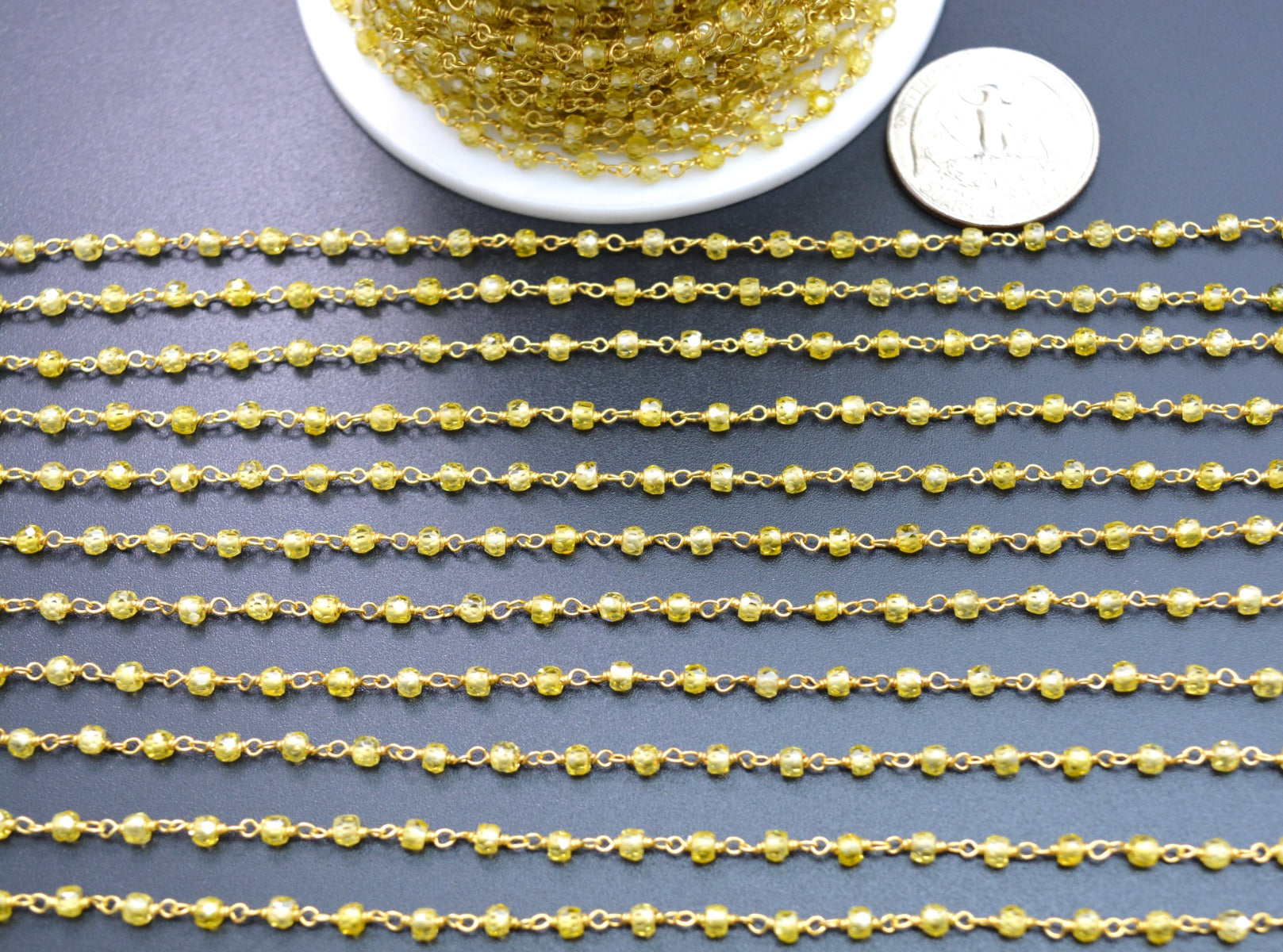 Artisan 925 Gold Silver Rosary Chain - Zirconia 3mm