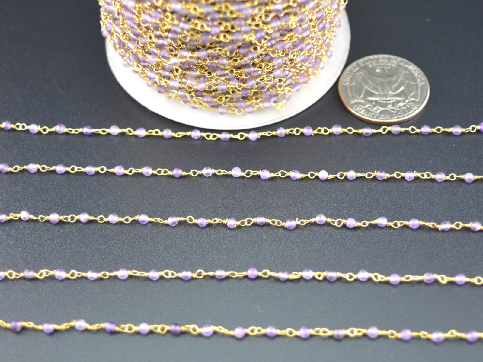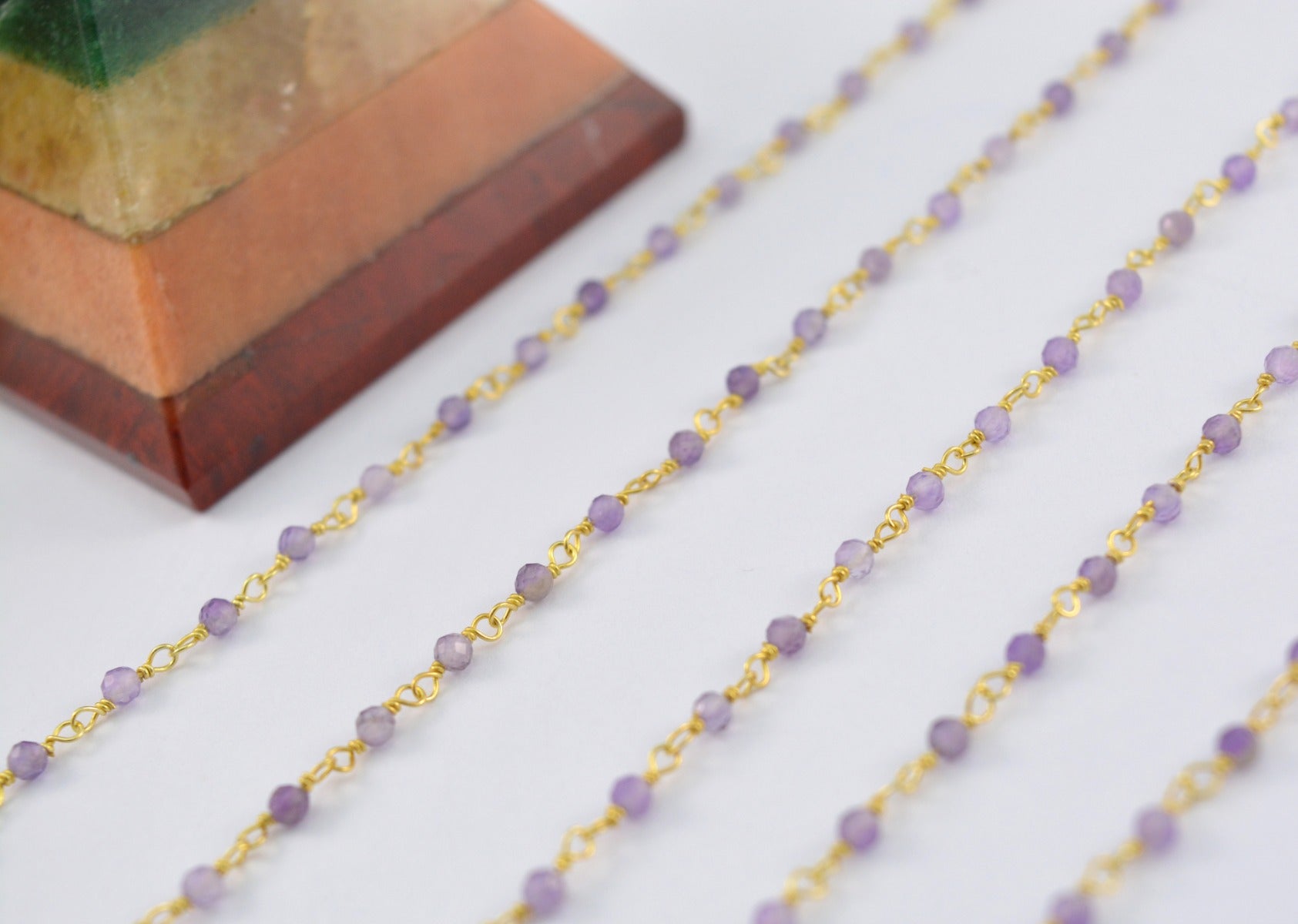 Artisan 925 Silver Gold Rosary Chain - Amethyst 2mm