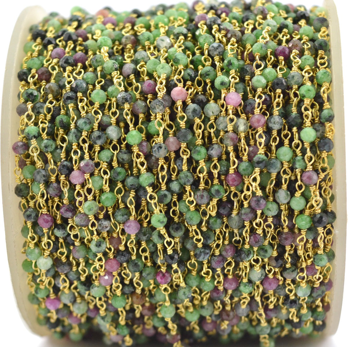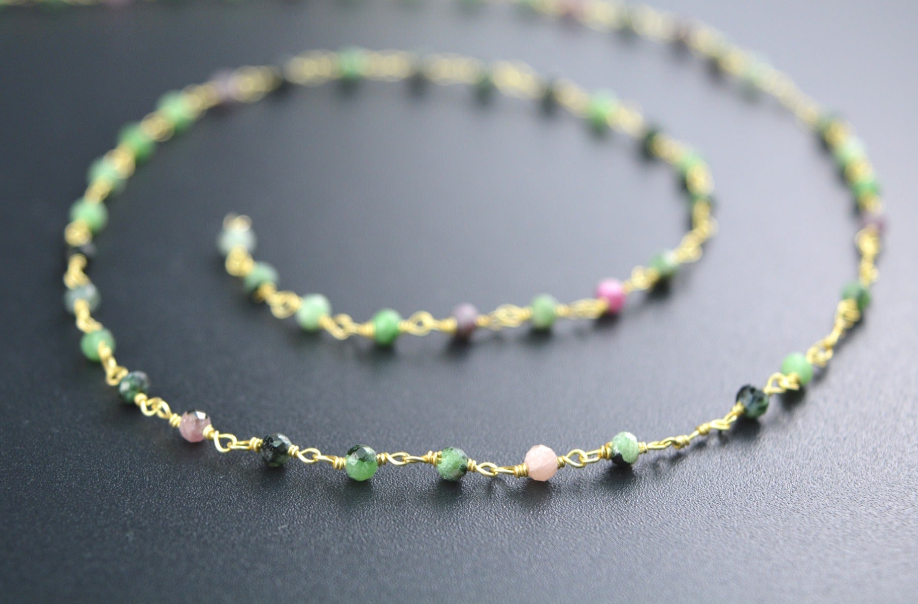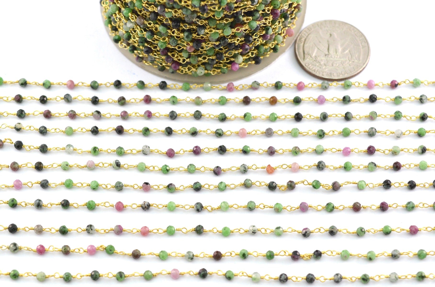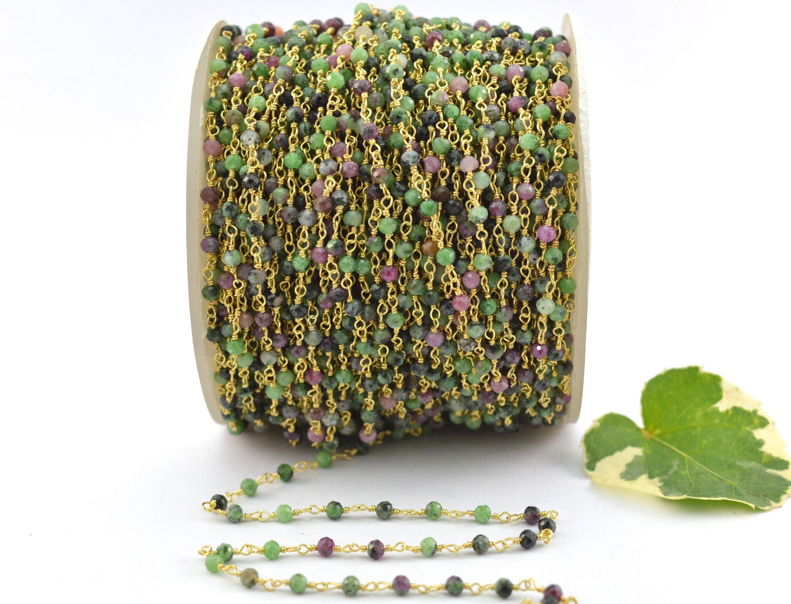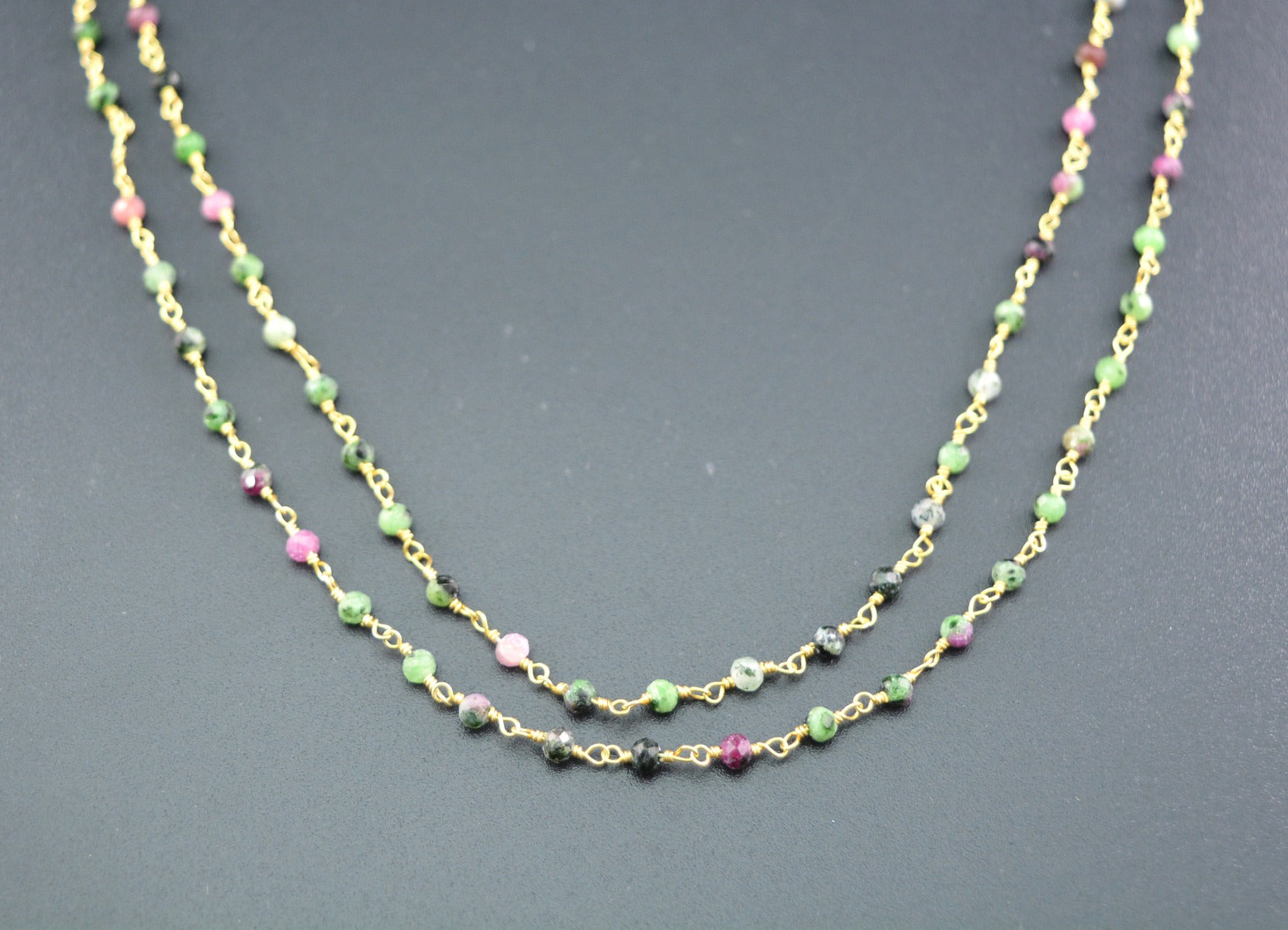 Artisan 925 Silver Gold Rosary Chain - Zoisite 2mm