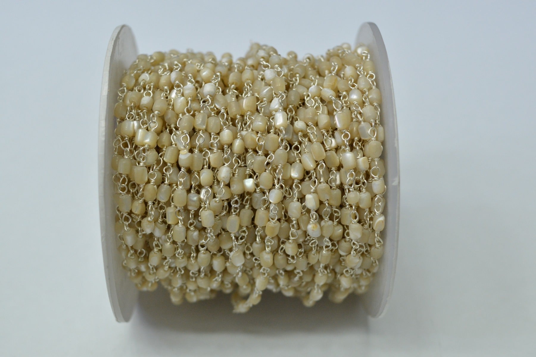 925 Sterling Silver Gorgeous Mother Of Pearl 2.20X3.20mm Small Tube Wire Wrapped Rosary Chain. Sold By Foot. ROS2-5550