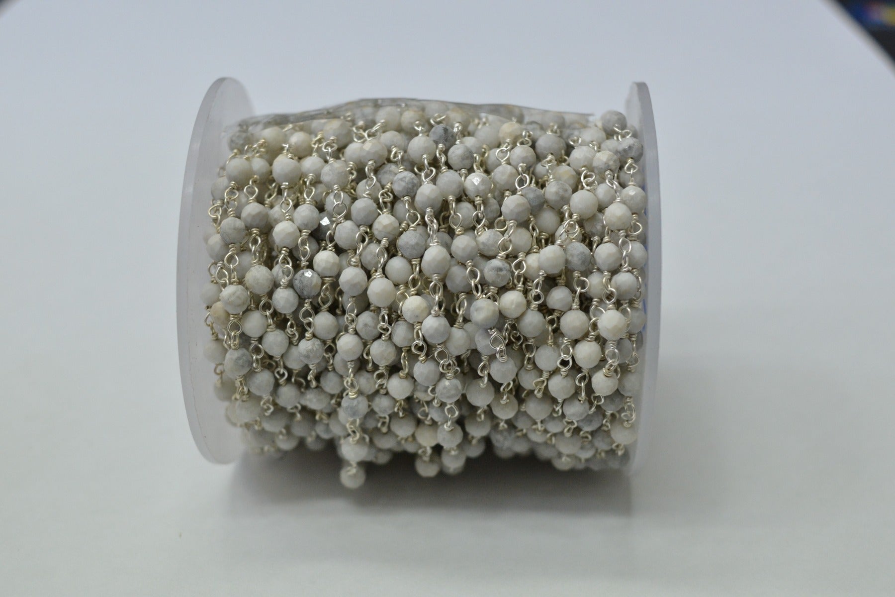Artisan Stone Rosary Chain in 925 Gold Silver - 3.00mm