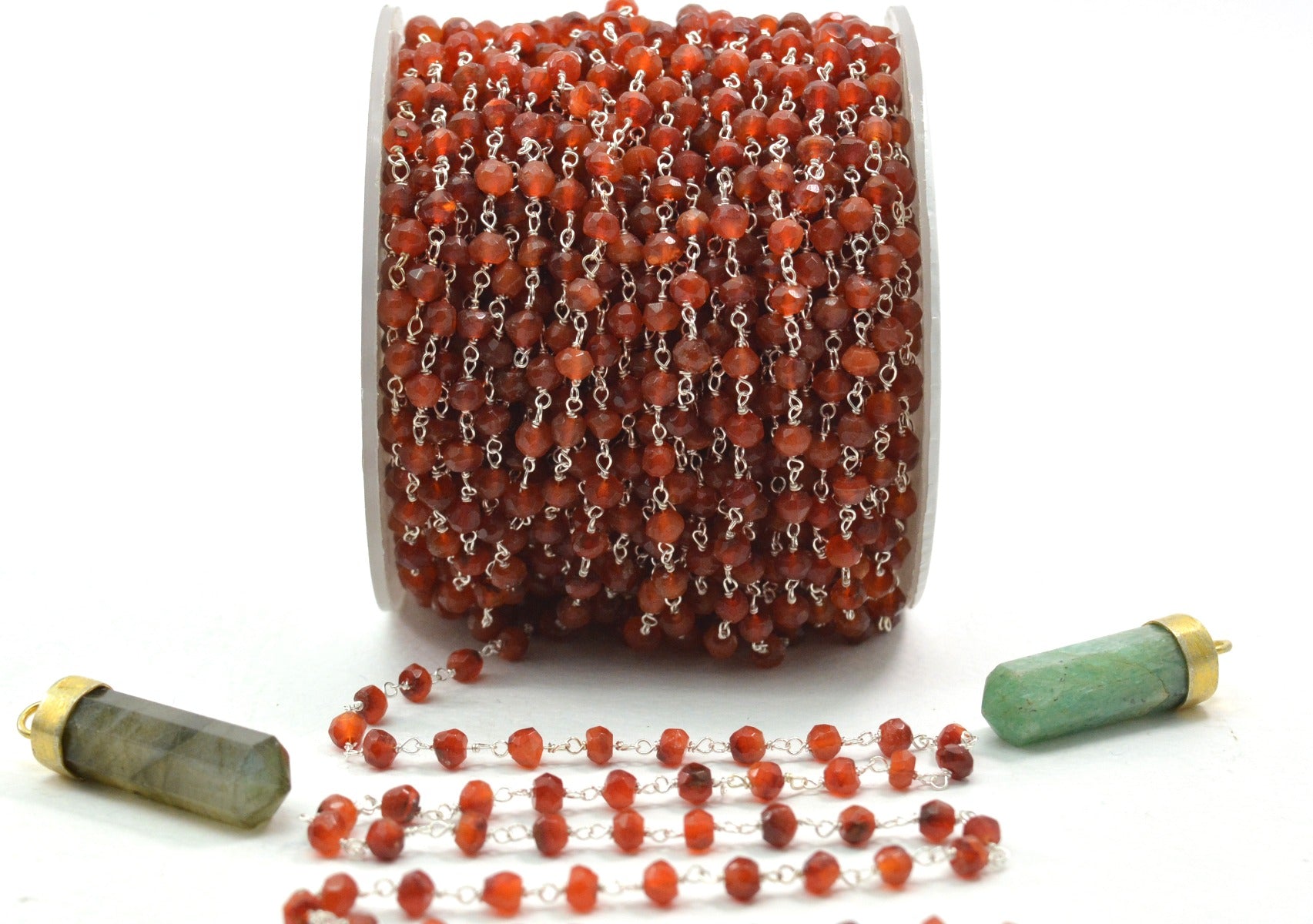Artisan Stone Rosary Chain in 925 Gold Silver - 3.50mm