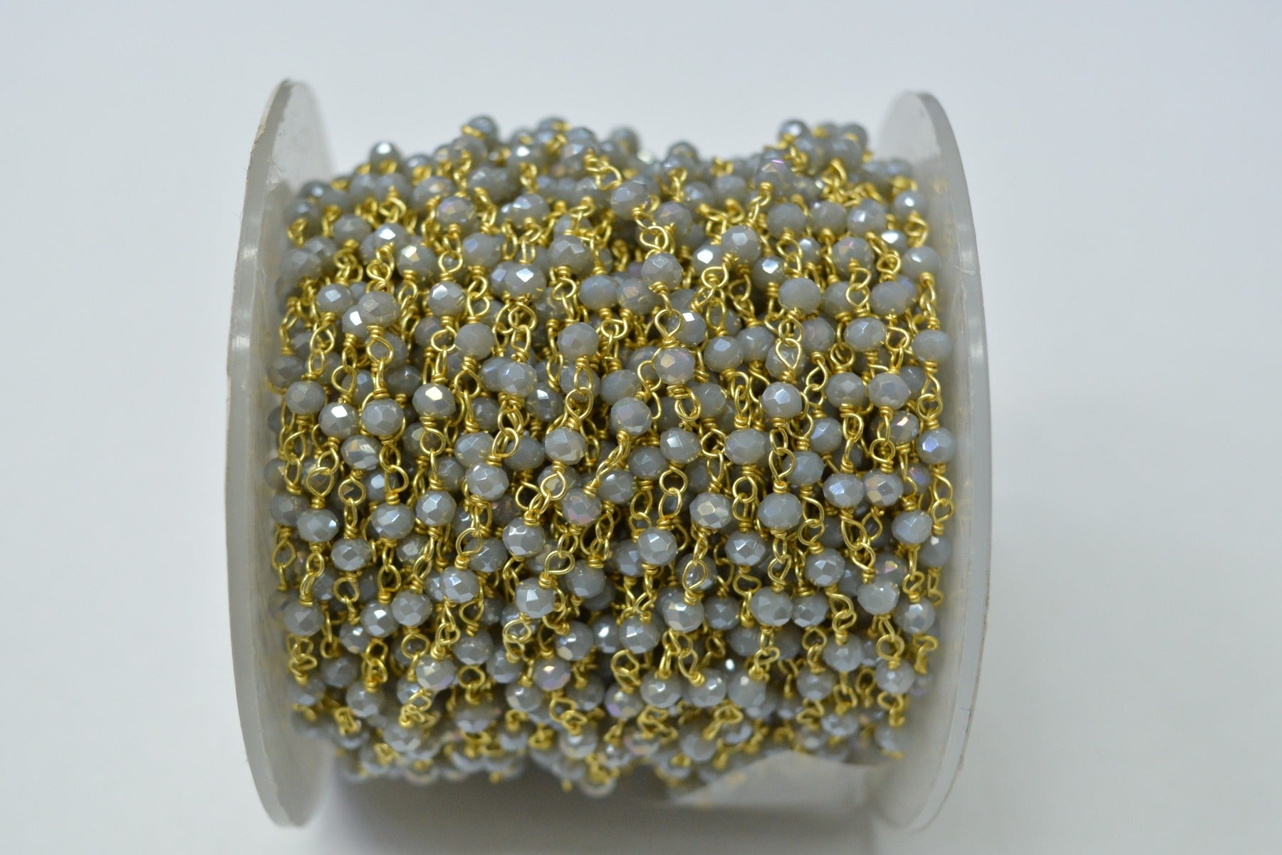 925 Sterling Silver Gold Plated Gorgeous 3.00 mm Roundel Gray Chalcedony Coated Wire Wrapped Rosary Chain. Sold By foot, ROS2-5519