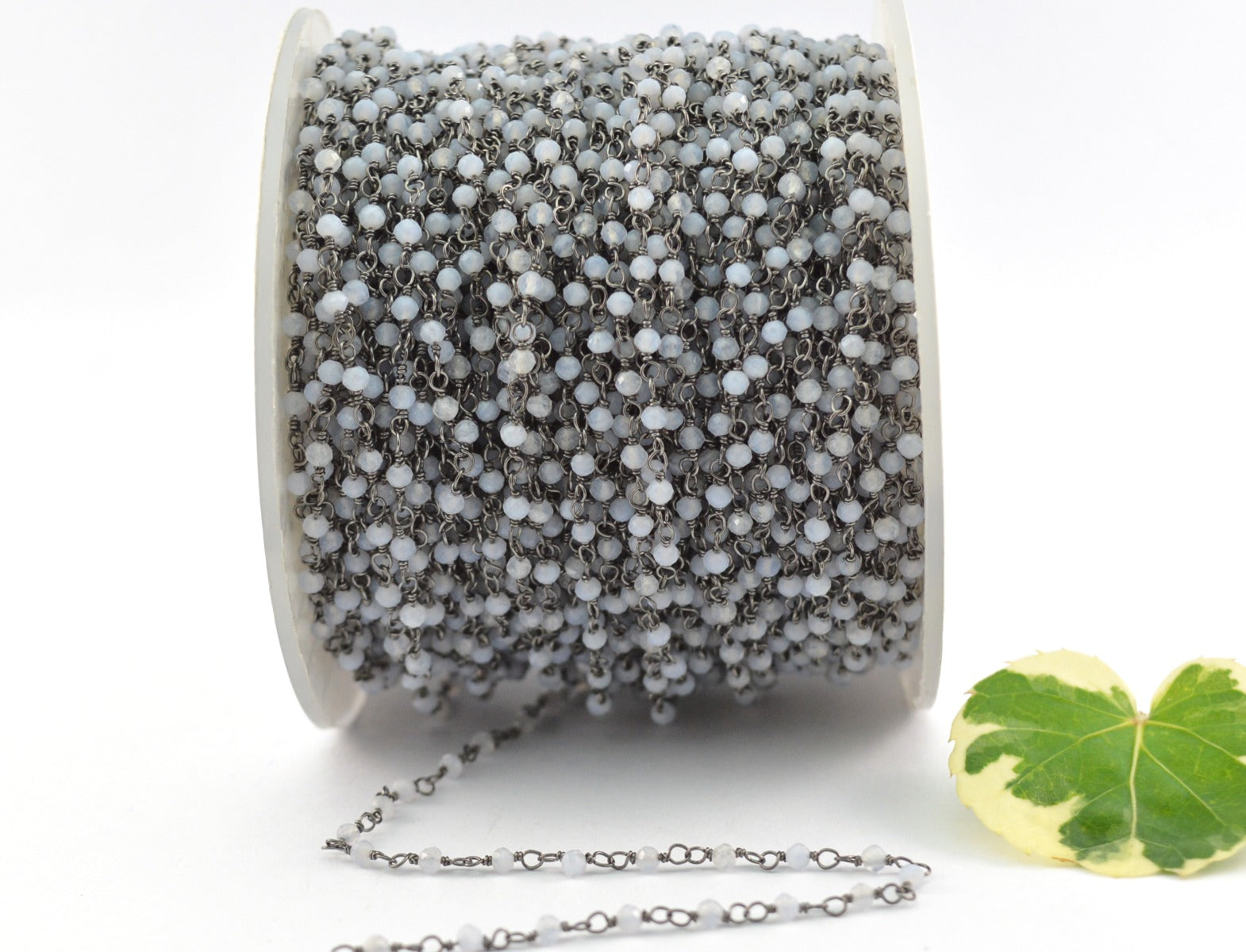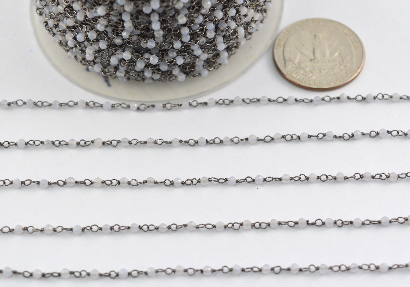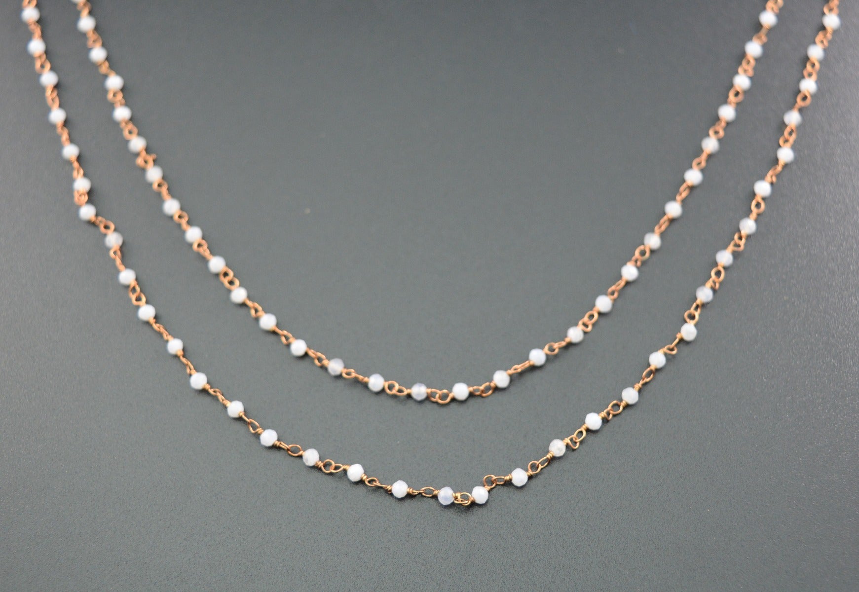 Beautiful Chalcedony Rosary Chain in 925 Silver Gold - 2.00mm
