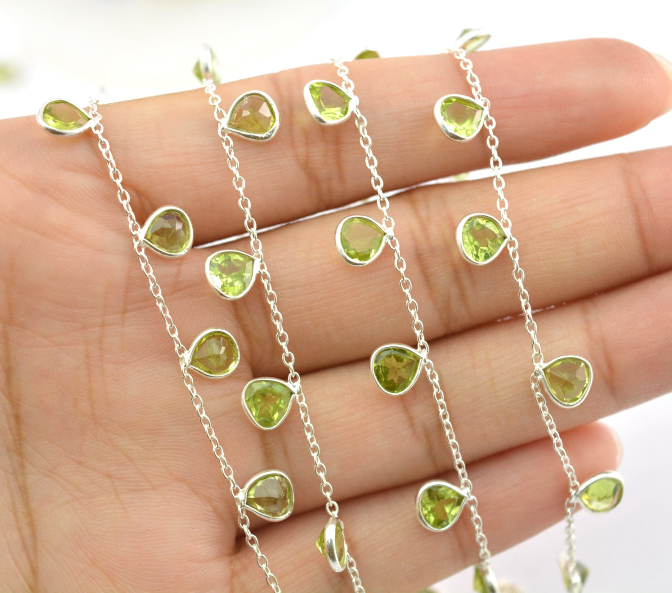 Beautiful Rosary Chain - Peridot 925 Silver Gold 4.00mm