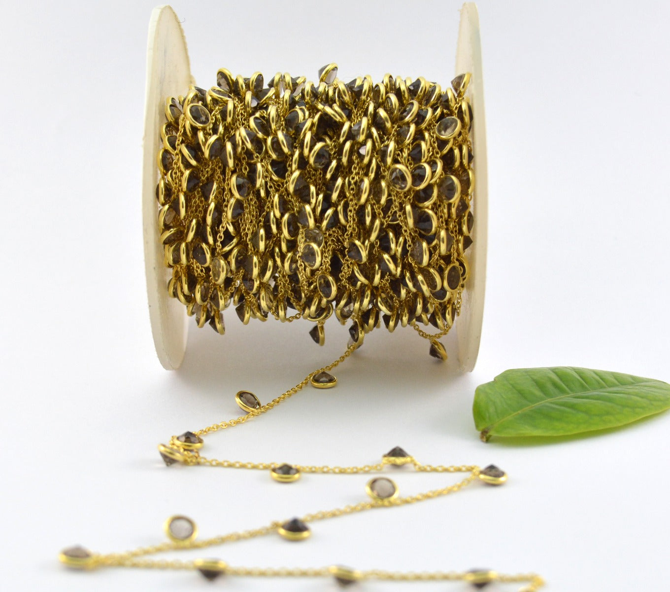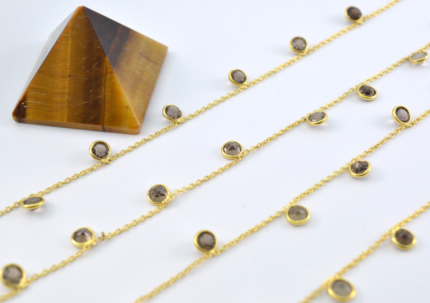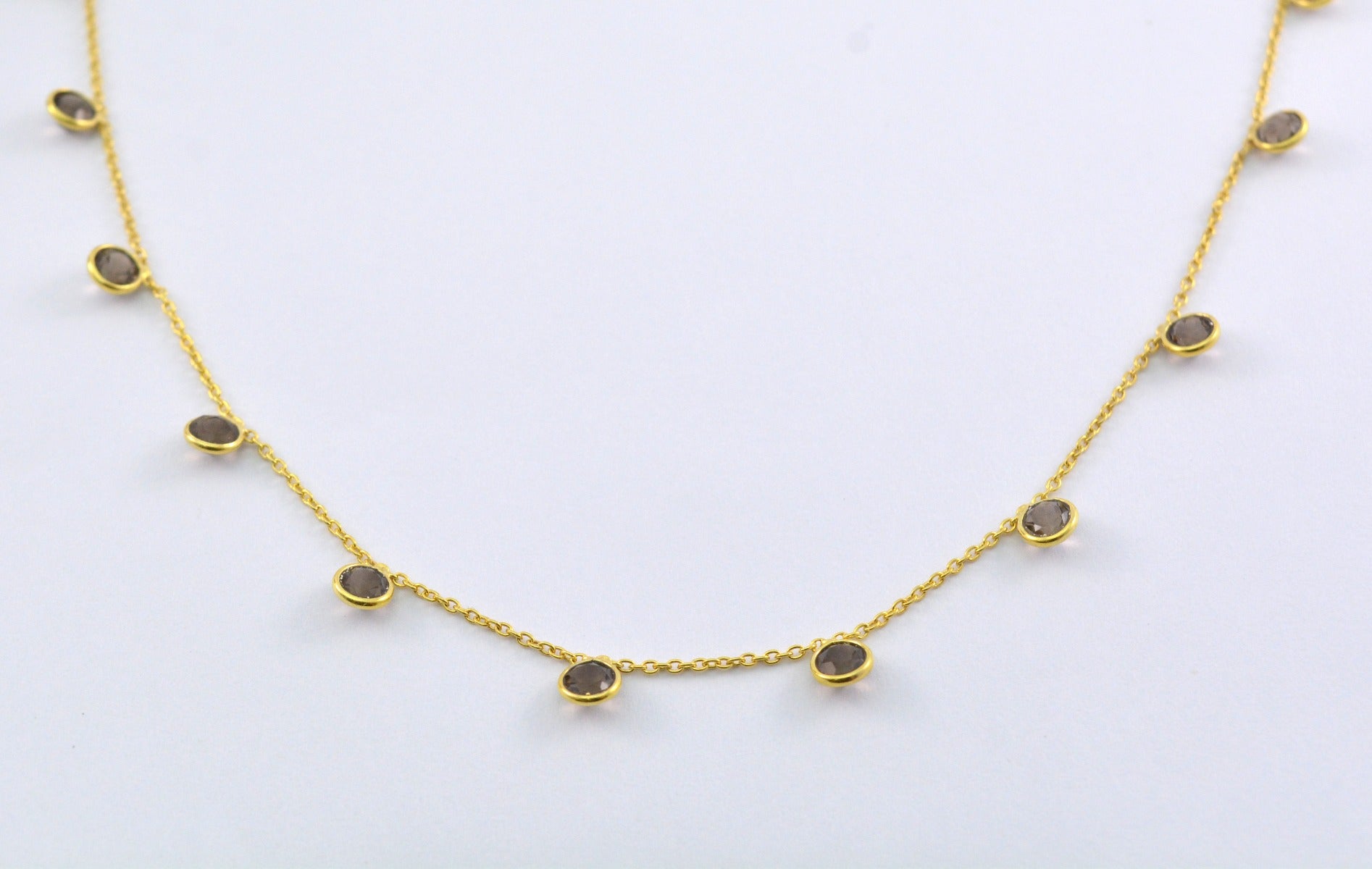 Beautiful Stone Rosary Chain in 925 Silver Gold - 4mm