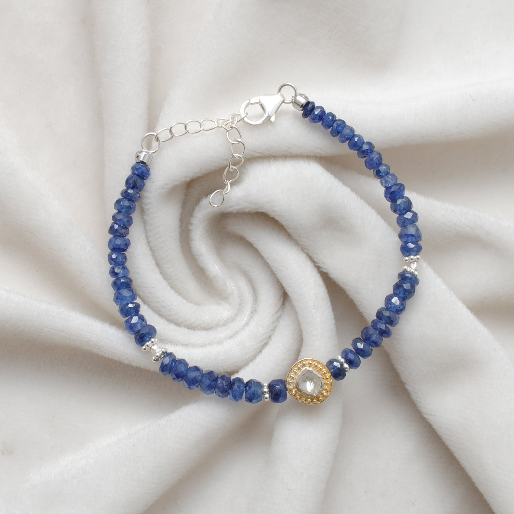 925 Sterling Silver Blue Sapphire & Diamond Bracelet – Dainty Gemstone Jewelry Gift