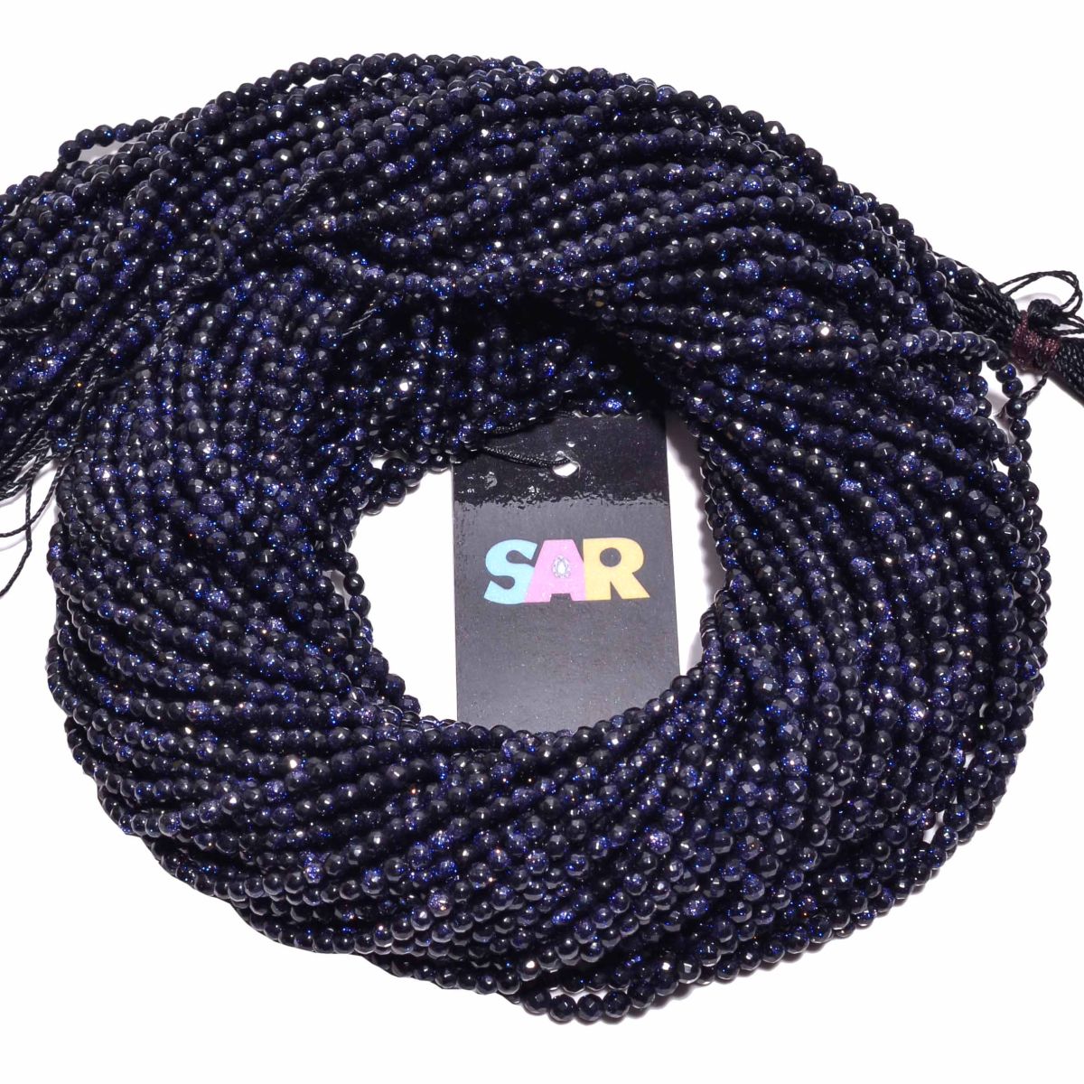 Blue Sunstone Faceted Round Beads in 3mm Size